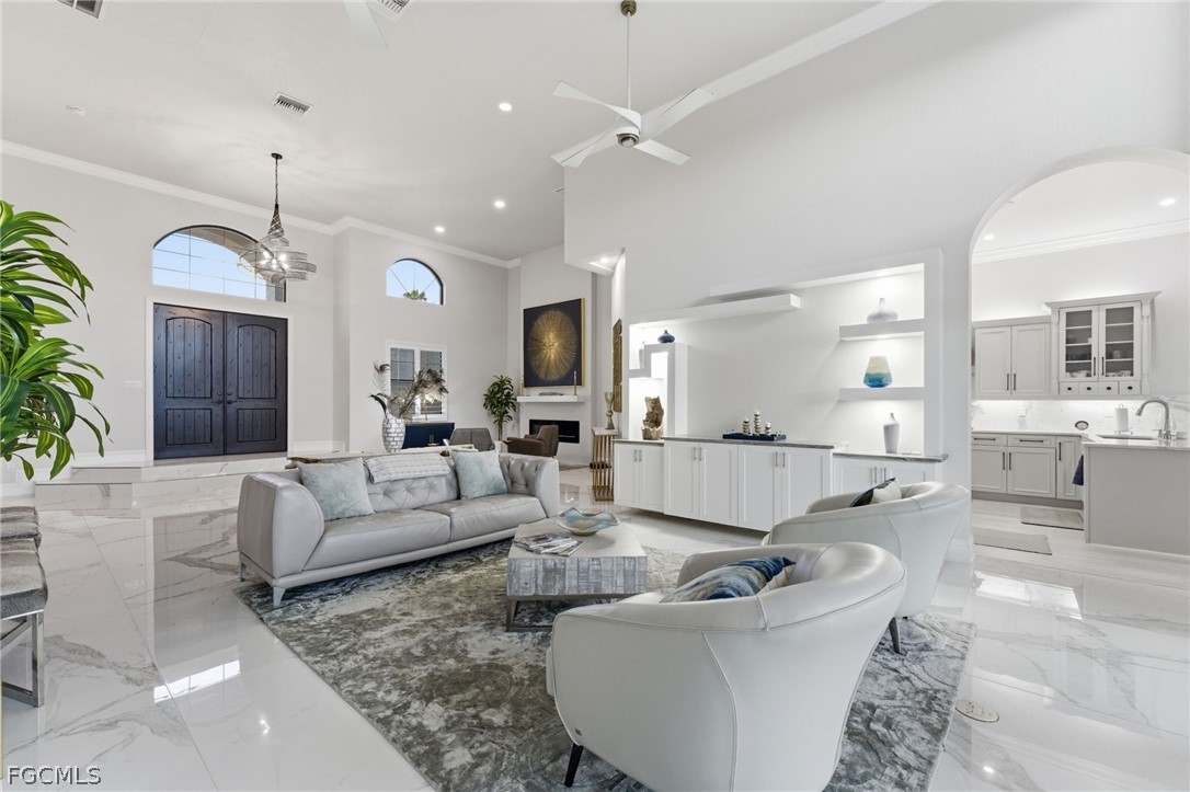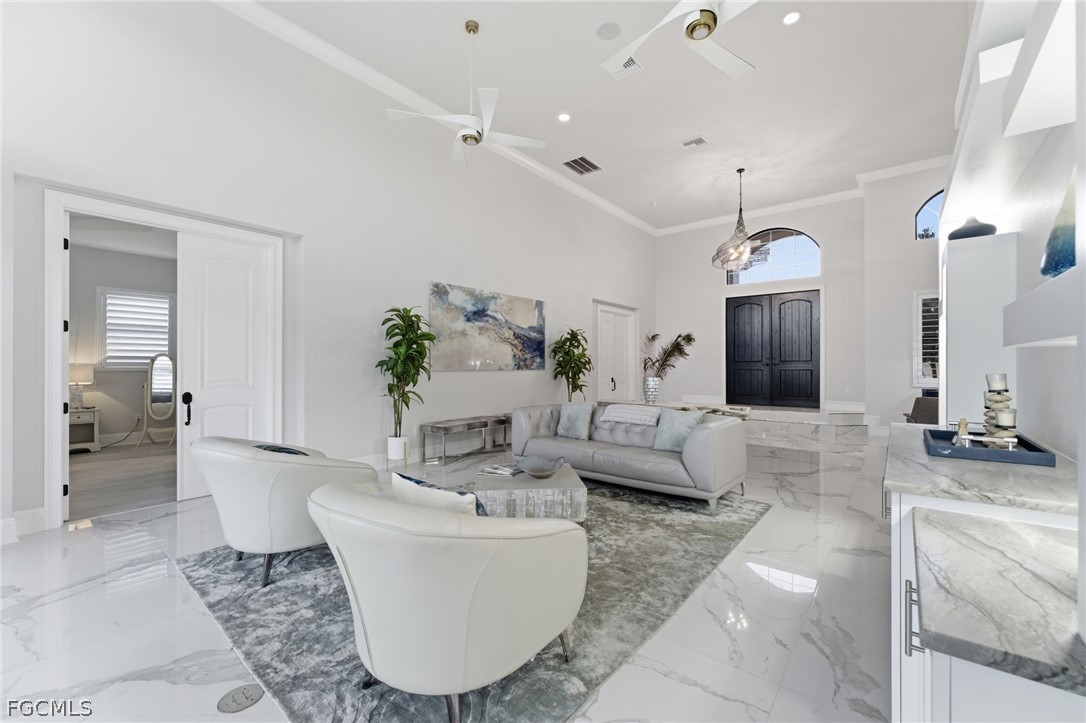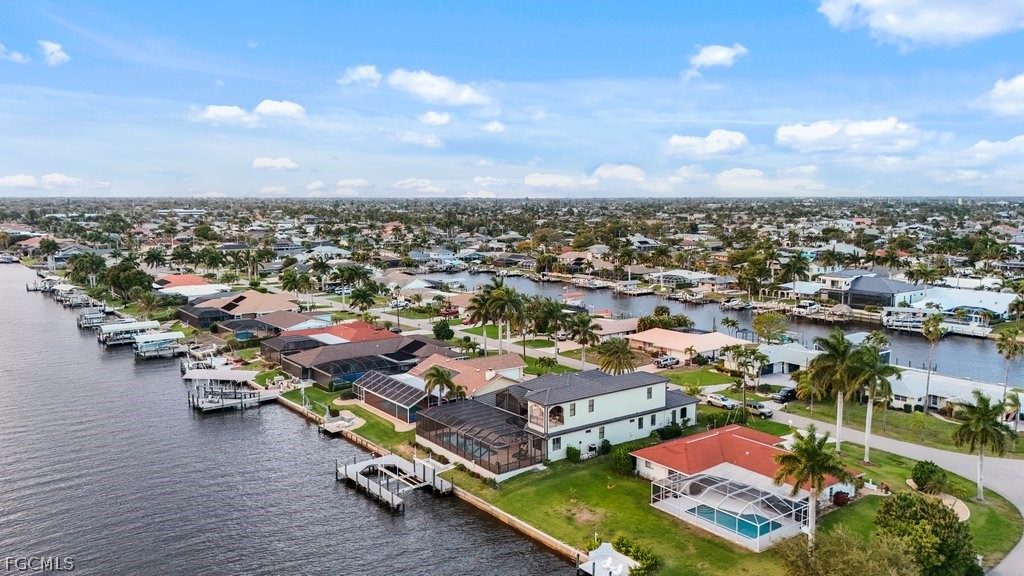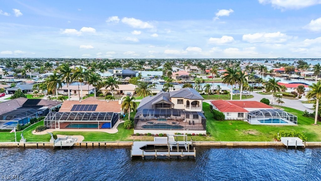 Reintroduced to the market with significant enhancements, this extraordinary waterfront residence is a true statement of luxury, elegance, and Southwest Florida lifestyle. Perfectly positioned on a direct access canal with approximately one minute to open water, this exceptional property offers a rare blend of boating convenience and breathtaking beauty, with sweeping river and open water views that create a spectacular backdrop from the moment you step inside. Recent improvements including a new roof, new dock, and new lift further elevate the appeal, offering both peace of mind and immediate enjoyment for the discerning waterfront buyer. Designed to capture the best of its remarkable setting, the home features a second story balcony overlooking the water, while the sought-after southern exposure fills the residence with natural light throughout the day and provides the rare pleasure of enjoying both sunrise and sunset from the lanai. Whether hosting elegant gatherings, savoring quiet mornings on the water, or departing from your private dock for a day on the Gulf, this residence delivers the kind of refined coastal living few properties can offer. This is more than a home, it is a waterfront masterpiece in one of Cape Coral’s most desirable boating locations.