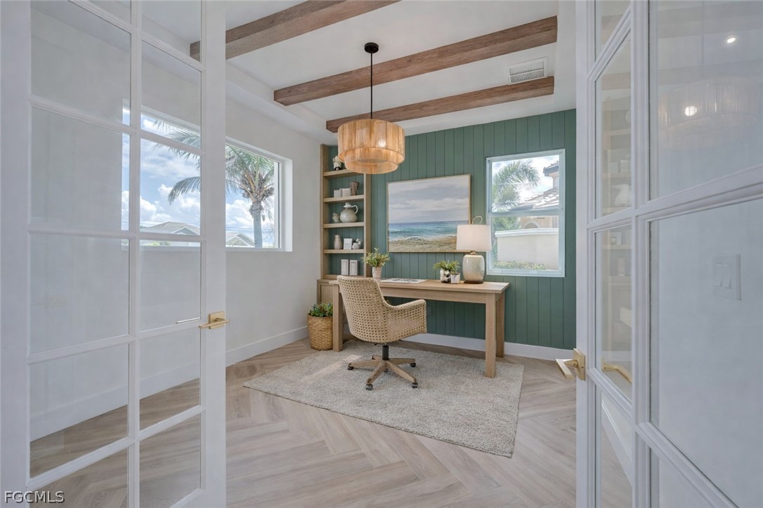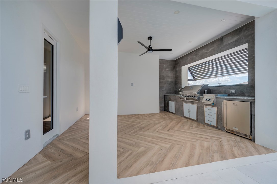 Step outside to your private waterfront oasis along the 95-foot-wide Jai Lai Canal with direct Gulf access and desirable western rear exposure for spectacular sunsets. The expansive 1,440-square-foot lanai features elegant white marble flooring and wood plank ceilings, perfect for entertaining.