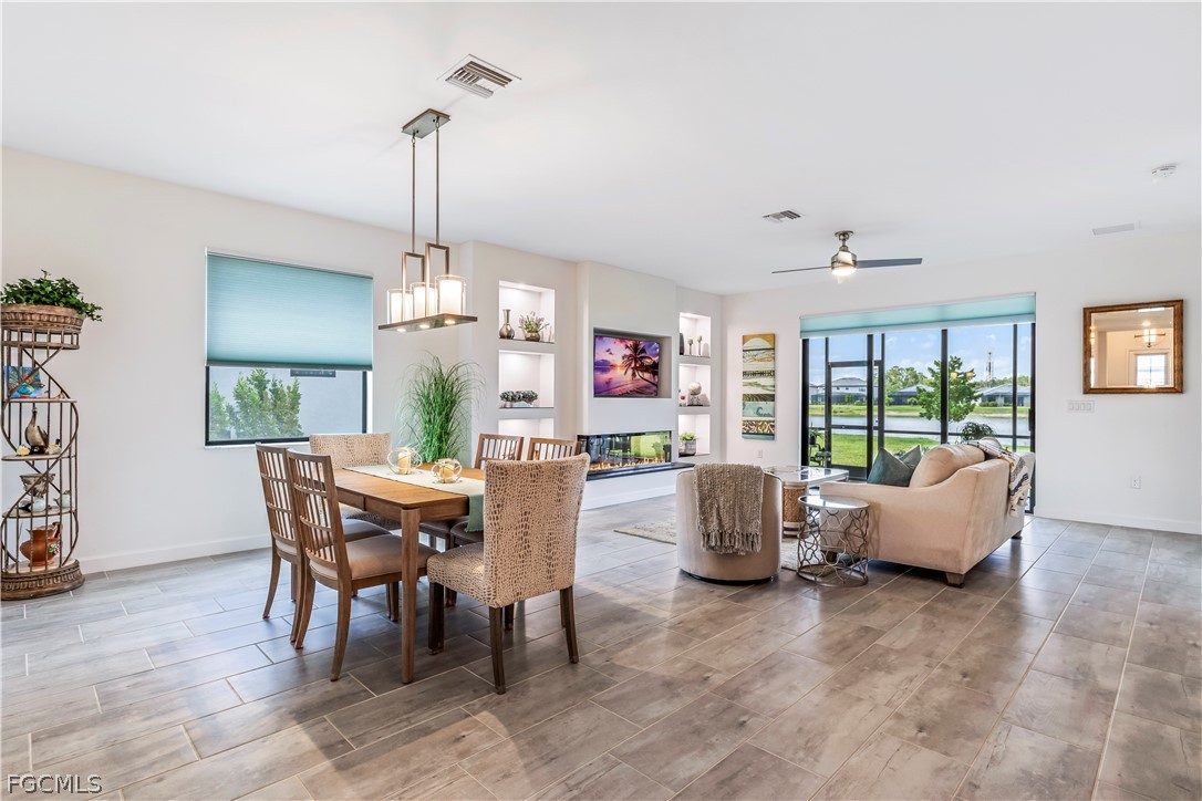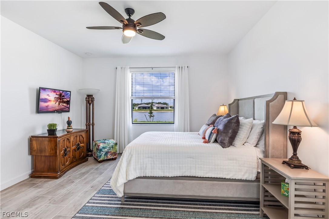 Model perfect 4 Bedroom 3 Bath home with stunning lake views. This pristine home is set on an oversized waterfront lot in the resort community of Timber Creek. The Trevi floor plan is perfect for entertaining with an open floor plan. The kitchen is light and bright with white wood cabinets, Quartz countertops, upgraded backsplash, custom pendant lighting and stainless steel appliances. The focal point of the living room is a fireplace feature wall with a 3 sided electric fireplace, built-in shelving and lighting. This home offers 2 primary bedrooms with ensuite baths- perfect for hosting guests and 2 extra guest rooms. The home has been impeccably maintained and is move in ready. The modern touches and custom upgrades must be seen in person to truly appreciate. Timber Creek is a resort community with several pools, fitness room, basketball and volleyball courts, pickleball and tennis, casual poolside dining, or indoor restaurant. This golf cart friendly community offers everything you're looking for in a Forida home.
