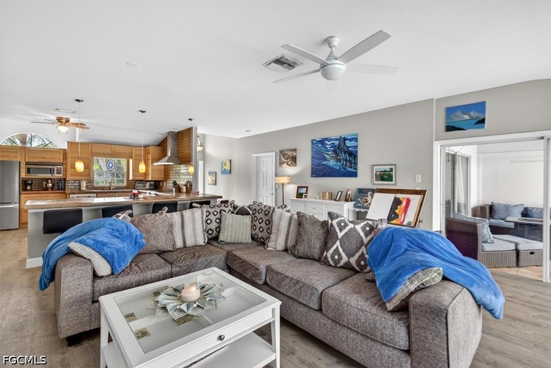 Beautiful 3 bedroom/2 bathroom POOL home with a 2-car garage, covered lanai, split-floor plan and gorgeous upgrades. The large kitchen features rustic, concrete countertops, all stainless-steel appliances, plenty of cabinet storage and barstool seating. The open floor plan and spacious living area with tall ceilings and double sliding-glass doors let in plenty of natural light and welcome you home! Both bathrooms have been recently remodeled around 2-years ago. The master bedroom features a walk-in closet and ensuite with a double-sink vanity and walk-in shower, as well as access to the covered lanai in the back. Out back you'll find an expansive patio with a glistening blue pool, protected by a screened enclosure, as well as an outdoor kitchen with a grill, sink, and barstool seating under the gazebo! Perfect for family gatherings and entertaining. Located in the highly desired, gated Moon Lake community with amenities such as a heated community pool, clubhouse, and tennis court. Close to everything Naples has to offer in 15 minutes or less- including Naples Beach, Naples Zoo, multiple popular restaurants, parks, schools, clinics, and more. Enjoy Florida west-coast living in a quiet, lovely community, your own tropical oasis to enjoy the sunny Florida days, and still be minutes from everything you may need.