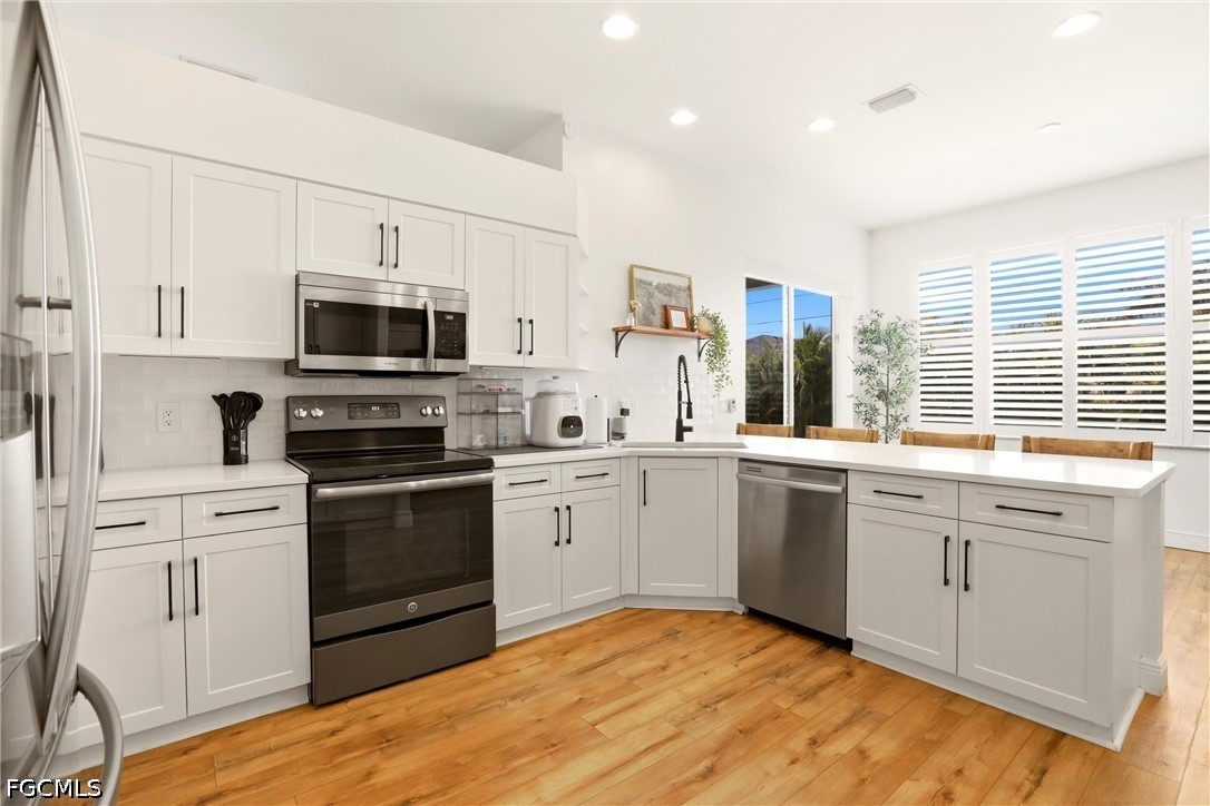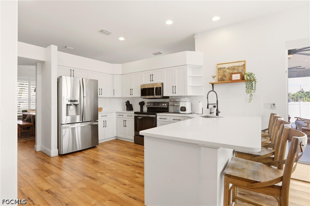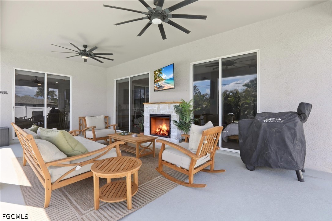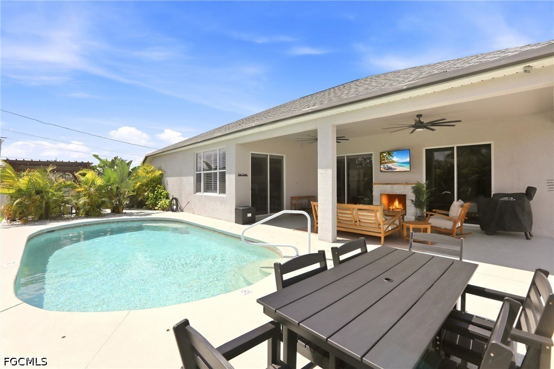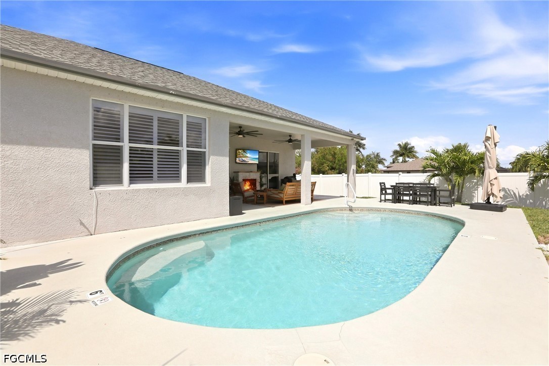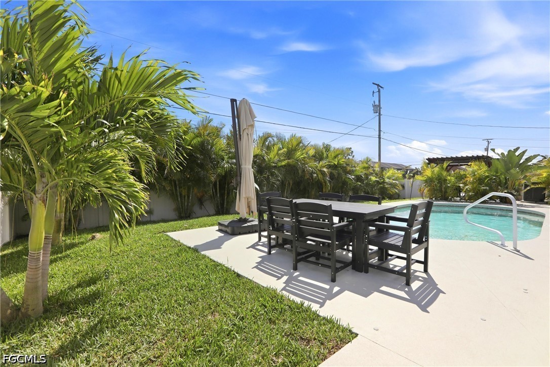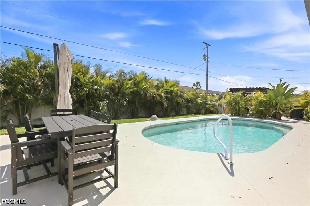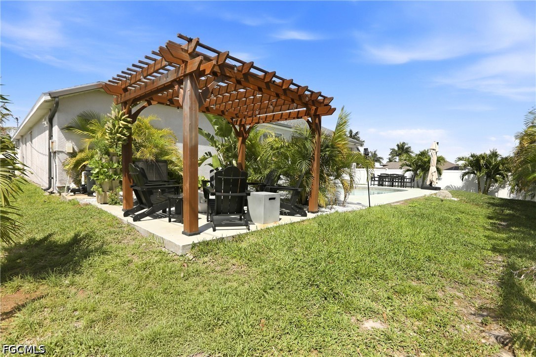 Experience Your Dream Home in This Highly Desirable Neighborhood of SW Cape Coral. You will Find 3 Bedrooms, Plus a Den (Den includes a closet for storage), 2 Bath Home with Over 2300 Sq Ft of Comfortable Living Area. The Kitchen has Lovely White Soft-Close Shaker Style Cabinets with Complimenting Quartz Counterstops, a Gorgeous White Backsplash, SS Appliances and a Breakfast Bar. There is a Formal Living with Electric Fireplace and Dining Area AND a HUGE Family Room Perfect for Entertaining or Just Relaxing! The Sliders Lead You to the Best Part of the Home, the Heated Pool, Covered Lanai with Electric Fireplace and a Spectacular Separate Landscaped Pergola Area for Enjoying the Florida Lifestyle and Fully Fenced for Privacy. The Bedrooms have Newer Carpeting and Updated Luxury Vinyl Plank Flooring Throughout, Giving the Home a Seamless Flow. Roof was Replaced in 2022 and AC in 2021. This One Truly Feels Like Home!