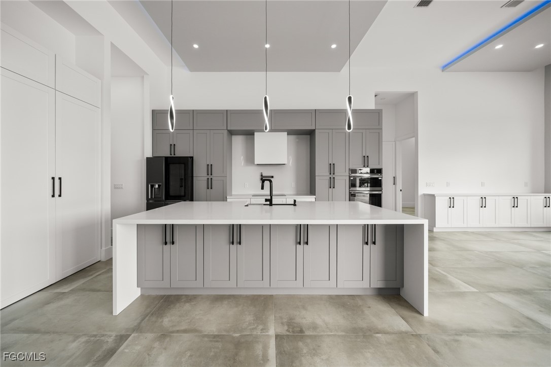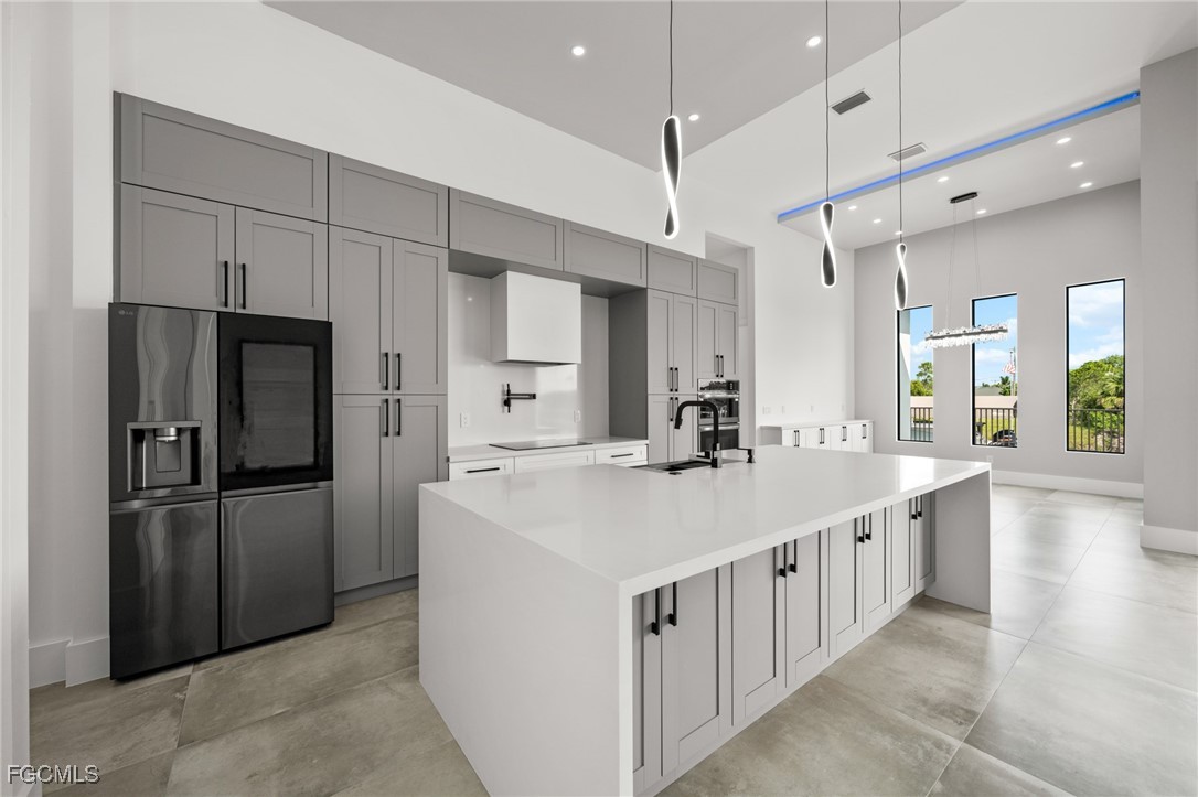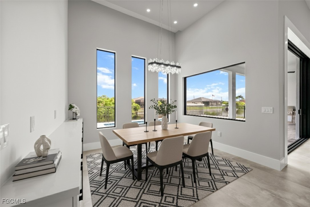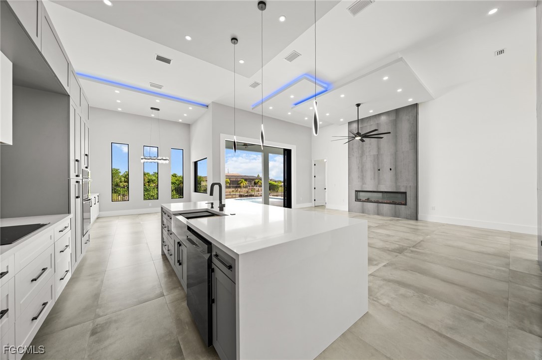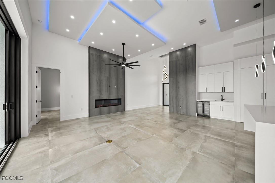Luxury 2025 Gulf Access New Construction Home near the future Seven Islands & Coral Grove! Ultimate modern coastal living with this brand-new 2025 Gulf Access luxury home, perfectly positioned near Kismet Lakes and the highly anticipated Seven Islands waterfront project. Surrounded by other high-end Gulf access properties, this residence offers nearly 2,400 square feet of living space and over 3,500 total square feet, thoughtfully designed to embrace the Florida waterfront lifestyle. Step inside and be captivated by 14.8-foot designer tray ceilings with LED lighting, a striking electric fireplace feature wall, and large-format tile flooring that flows seamlessly through the open-concept floor plan. Expansive 10-foot impact sliding glass doors create a dramatic connection between the great room and the resort-style pool overlooking the canal, blending indoor with outdoor serenity. Entertainer’s kitchen centered around a mitered-edge quartz waterfall island with bar seating, real wood cabinetry, a premium appliance package, and a wet bar/coffee bar with beverage cooler. Upgraded with a whole-house reverse osmosis system. The primary suite feels like a luxury hotel retreat, featuring tranquil waterfront views, dual floating LED-lit vanities, a rainfall walk-in shower, and a freestanding soaking tub. 2 additional bedrooms and 3 full baths offer space and privacy for family and guests, while a private office or den provides flexibility as a 4th bed/study. Impact windows & doors, detailed ceilings, and designer finishes. A sparkling pool with sun shelf, spacious paver deck, and a built-in outdoor kitchen, perfect for entertaining and relaxing under the Florida sun. The home’s exterior features include a tile roof, tankless water heater, upgraded landscaping with mature palm trees, and a 3-car garage. BOATERS: Gulf access via Matlacha Pass, leading to world-class fishing, boating, and the barrier islands of Sanibel, Captiva, and Cayo Costa. Golfers: Palmetto Pines Country Club & Coral Oaks Golf Course. Minutes from Target, Publix, Starbucks, parks, and top-rated restaurants. The location is also close to several of Cape Coral’s most exciting upcoming developments, including Bimini Square, The Cove at 47th, Slipaway Marina, and the reimagined Cape Coral Yacht Club Beach. The future Seven Islands Project is expected to bring marinas, boutique shopping, dining, parks, and possibly even a beach area, making this neighborhood one of the most desirable in Southwest Florida. Built to the 2025 BUILDING CODE, this home exceeds the latest standards for safety, elevation, and energy efficiency—sitting higher than homes built in 2023 and offering protection & insurance SAVINGS. Luxury, lifestyle, and location, this is not your average new build—it’s a high-end waterfront masterpiece that captures the essence of modern Florida living. Don’t miss your opportunity to own this stunning Cape Coral Gulf Access pool home. Start living the life you’ve always dreamed of.