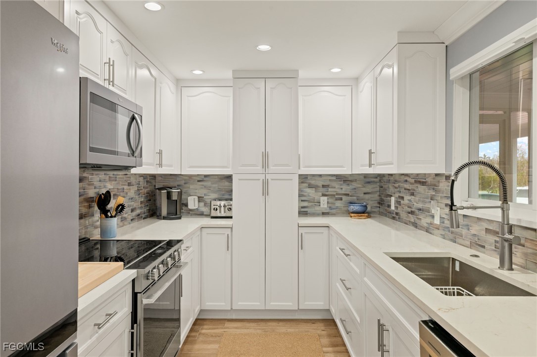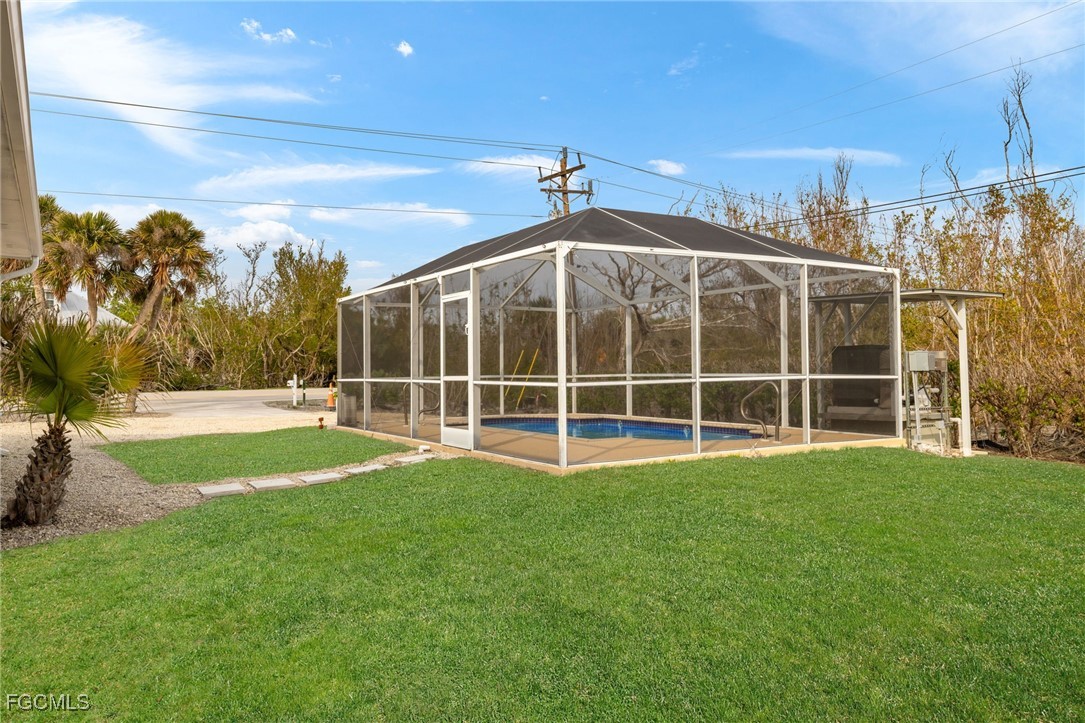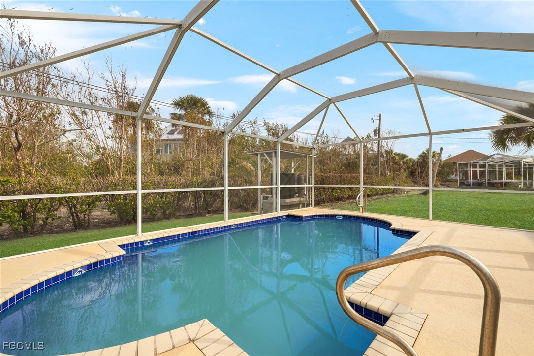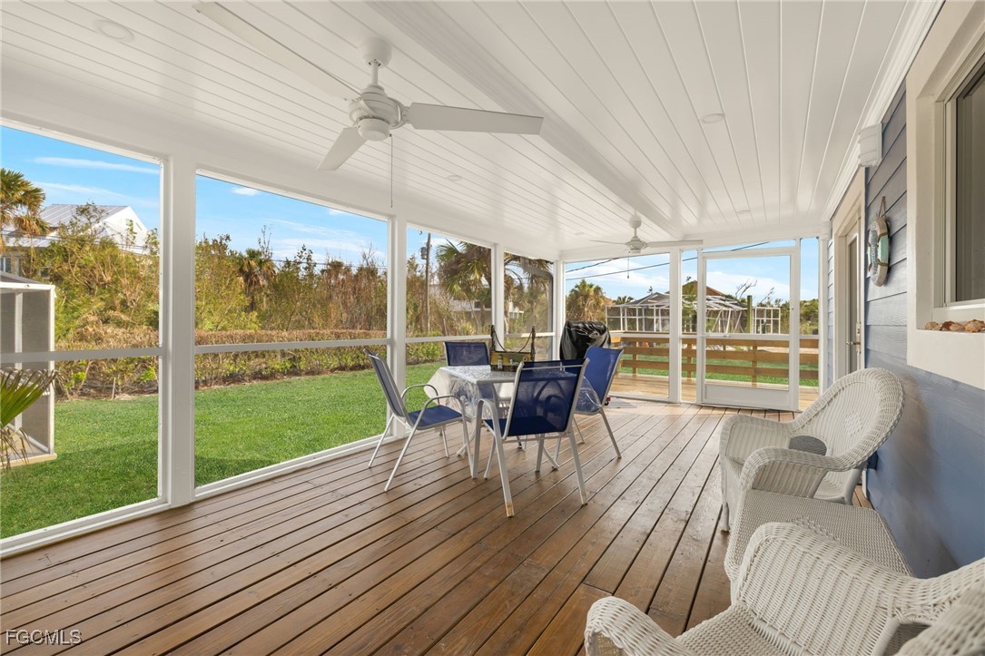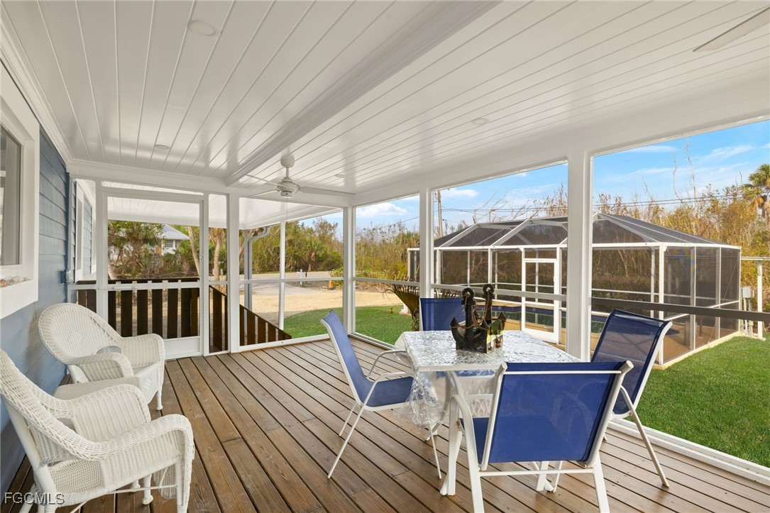 Beautifully remodeled "True" Sanibel Island Beach cottage situated in a great mid-island location and close to the beach. This partially elevated cottage offers 3 bedrooms, 2 baths and a detached screen enclosed, heated pool. Pool is going to be resurfaced. Cottage has new hard-I-board siding, freshly painted inside and out, impact windows and doors. Beautiful tile plank flooring throughout, all new Whirlpool appliances in the kitchen, custom cabinetry, quartz counters with a custom backsplash. New bathrooms with beautiful granite vanities. All bedrooms offer built-in cabinetry for space saving and an upgraded contemporary feel. Large screen enclosed Florida porch and a large private sundeck. New sod and irrigation system. Close to Great Island amenities, restaurants, shopping and more. Enjoy spectacular Sanibel Sunsets and some of the world's best shelling. Current exterior photos are digitally enhanced, in the process of taking new exterior photos.