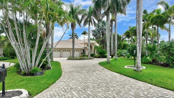 This home is located in the exclusive community of Admirals Point in the largest Florida west coast marina called Burnt Store Marina. The home sits on over one-half acre of meticulously maintained landscaping which features 15 Giant Royal Palms along with over 25 Foxtail Palms. The entry to the estate is on a cul-de-sac with a circular driveway featuring an island with a fountain. The home has a large 3-bay garage with hurricane rated 195 mph doors with windows. Upon entry to the home through double lead framed windows, you will be at awe when you see the beauty of the professionally designed one-of-a-kind home. Interior features include a private dining room with a vaulted double tiered lighted ceiling and a Butler's entry to the kitchen. The recently updated kitchen has GE Slate appliances, Quartz counters, and towering planter shelving. There is also a hanging tower over the bar that seperates the kitchen with the great room. Your eyes will immediately focus on the most unique feature of the home, that being an atrium which is landscaped with tropical plants surrounding a pond with a fountain. The atrium has a screened opening in the ceiling to allow natural light along with rainfall to replenish the pond. The home has a large primary bedroom along with two additional bedrooms at opposite ends of the home. Adjacent to the great room are pocketed sliders leading to the massive lanai/pool are encompassing 2165 square feet of tropical beauty overlooking a lake and golf course views. In order to see all this home has to offer, you must come take a look. Centrally located in the marina, the home also adds a great deal of privacy in that while sitting in the lanai, you cannot see a neighbor's home on either side. Burnt Store Marina lies on the eastern coast of Charlotte Harbor. In that Charlotte Harbor is the second largest estuary in the State of Florida, coupled with its proximity to the Gulf of America, it's no surprise that Burnt Store Marina is a mecca for boating and fishing enthusiasts. Whether your pleasure draws you to family fun cruising, speed boating, sailing, world class fishing, or dolphin and manatee sightseeing excursions, there is truly something for everyone to enjoy on the water. In addition, there are many amenities that include a fitness center, tennis, pickle-ball, swimming pools, world class fishing, a private yacht club, along with golf and waterfront dining. These are a few of the many treasures that await you. Imagine living in a community with a lifestyle where