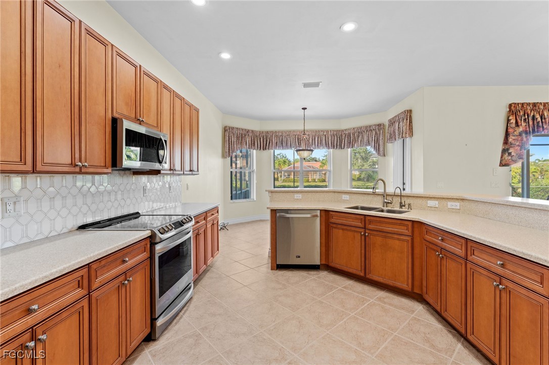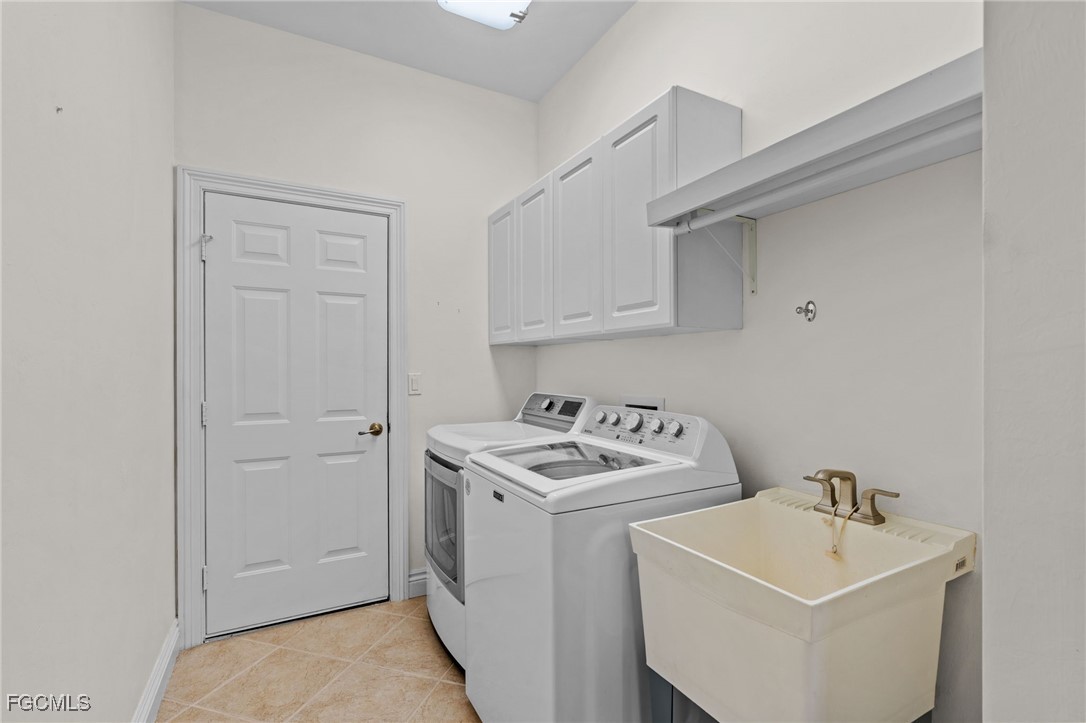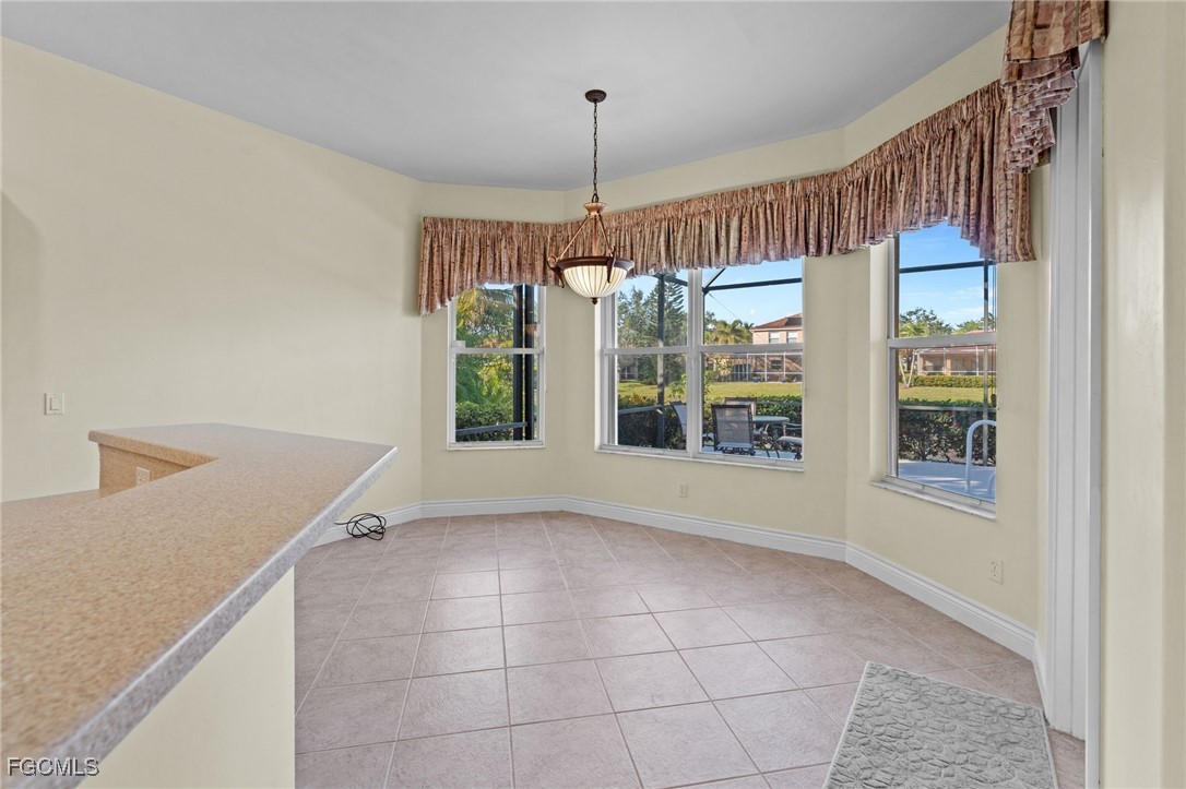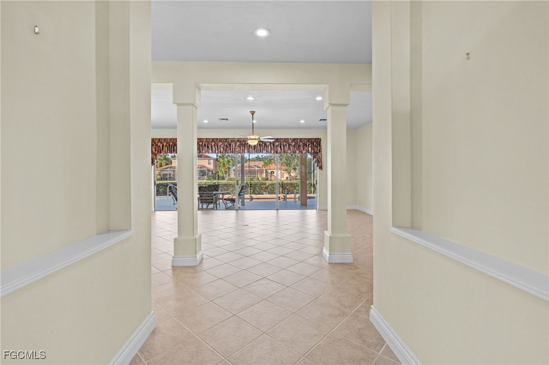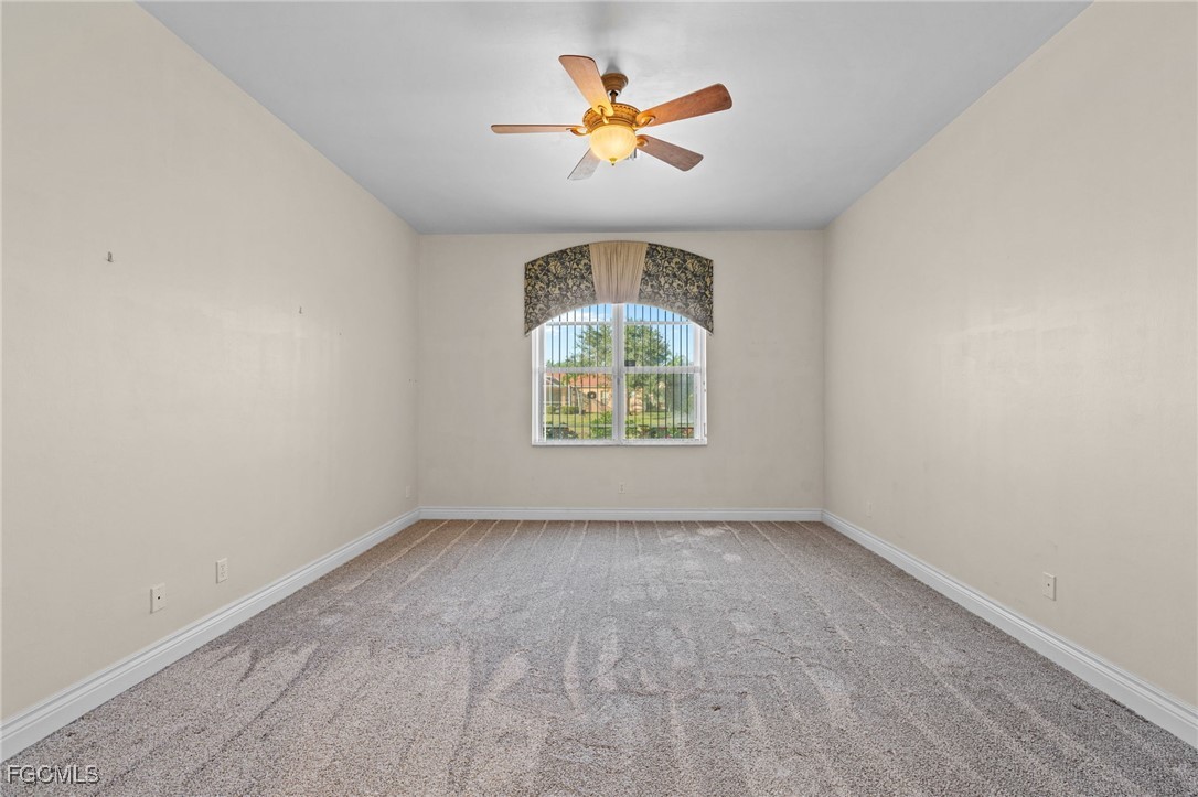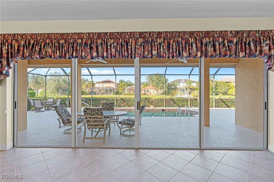 Welcome to paradise! Just under 2700 sq. ft., this spacious ranch with 3 bedrooms, 2.5 baths and an office on an oversized estate lot is on the market for the first time since it was built in 2005. The open floor plan enhances the view from the kitchen, dining room and living room of the pool, lanai, the lake and the fountain. The large master suite has his & her walk-in closets and a spacious master bath with large walk-in shower, soaking tub and his & her vanities. The office has custom power Hunter Douglas window treatments with new oak flooring and upgraded molding. Both guest bedrooms have power Hunter Douglas window treatments, carpet and ample closet space. Kitchen has newer stainless-steel appliances, laid out with a view of breakfast nook, living room, dining room, lanai, pool and lake. The chefs’ inspired kitchen has plenty of cabinet space as well as a pantry. Upgrades & features: new roof 2025, insta-hot tankless hot water heater, power hurricane shutters on covered lanai and front door, accordion shutters on all other windows, upgraded base molding and casing, new carpet in master bedroom 2024, salt water pool with heater, lanai extends the entire width of the home, paver driveway and walkway, new washer & dryer 2023, built in storage cabinets in garage and huge storage area above garage door. Upgraded premium lighting fixtures inside and out, custom window treatments throughout, whole house water purification system, reverse osmosis system at kitchen sink, located within walking distance to highly rated Gulf Coast High School, a clubhouse with a pool, spa, gym, tennis courts, basketball court and playground and low HOA quarterly fees.
