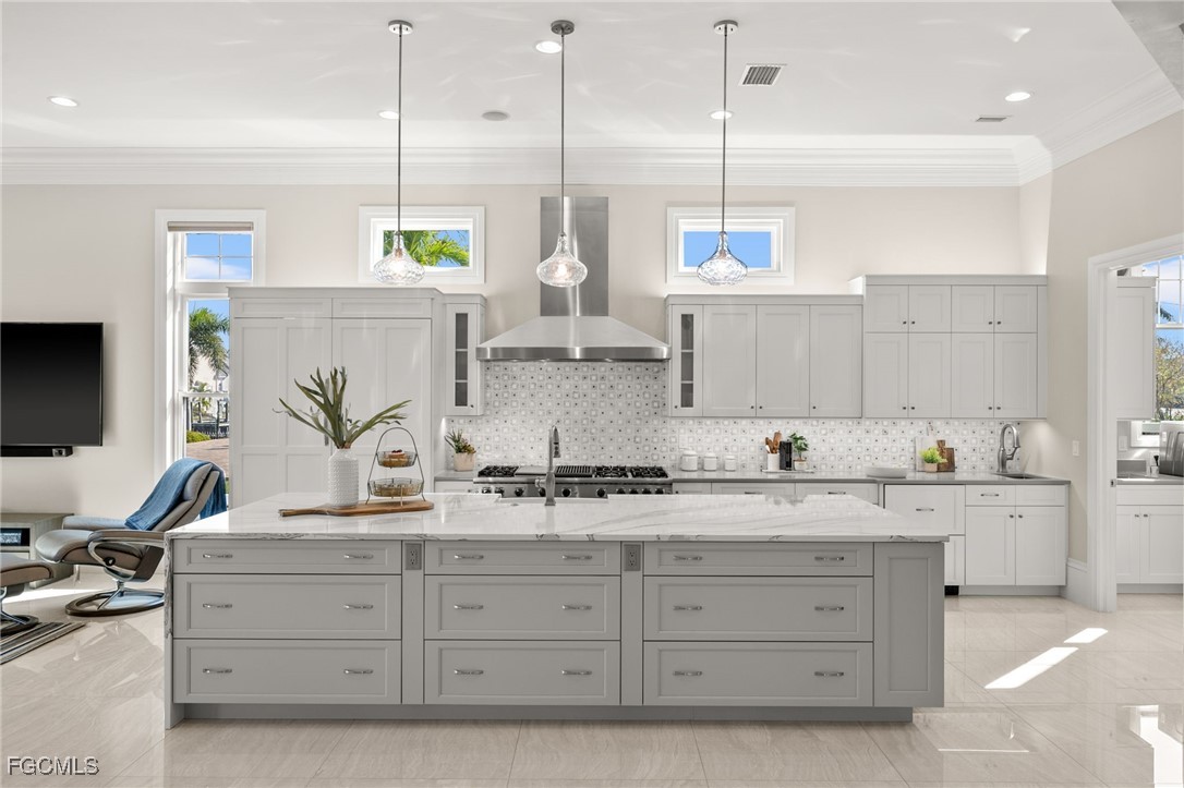 Welcome to 123 SW 53rd St, a one-of-a-kind Direct Sailboat Gulf Access estate offering the ultimate in Southwest Florida waterfront living. This 5-bedroom, 6-bathroom home spans over 3,500 sq ft and sits on nearly half an acre with 160 feet of direct sailboat access along a wide canal. The property includes two beautifully landscaped lots. One is fully fenced with a large paver patio and separate buildable parcel. Boaters will appreciate the full-length captain’s walk, 20,000 lb and 7,000 lb lifts, and quick access to open water. Inside, the home has been fully remodeled with high-end finishes while preserving its Mediterranean charm. Elegant details include crown molding, 12-inch baseboards, recessed lighting, and sophisticated flooring throughout. The primary suite is amazing, with tall ceilings, natural light, lanai access, and a luxurious en suite bath with marble walls, a soaking tub, and a glass-enclosed shower. Upstairs, three guest suites each have private bathrooms, including one with a balcony overlooking the pool and canal. A fifth bedroom on the main level features floor-to-ceiling windows. Centered around a stunning courtyard-style pool and spa, the home is built for relaxation and entertaining. The resort-style outdoor space includes a tanning shelf, built-in spa, custom lighting, and a screened enclosure. The lanai is equally impressive with wood-paneled ceilings, an outdoor kitchen, and a pool bath. The chef’s kitchen is outfitted with custom cabinetry, two-tone quartz counters, Viking gas range, Sub-Zero fridge with matching panels, drink drawers, and dual sinks. A butler’s pantry with glass-front cabinets adds extra storage and bar space, and the formal dining room includes a hidden storage area behind wainscoting. The family room opens to the lanai through zero-corner sliders, and the living room offers built-in shelving, backlit arches, and a gas fireplace. A flex loft upstairs provides an ideal home office space. Additional features include impact windows and doors, a three-car garage, circular paver driveway, a hurricane screen, and a $150,000 solar system that keeps electric bills around $40/month. This home has NEVER FLOODED in any storm. Located at the end of a quiet cul-de-sac, just minutes from Tarpon Pointe, Cape Harbour, and downtown Cape Coral. A rare opportunity for luxury, privacy, and quick Gulf access in one of the city’s most sought-after neighborhoods.