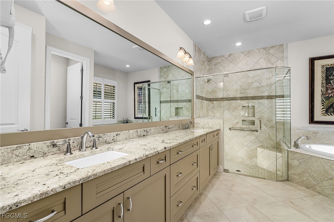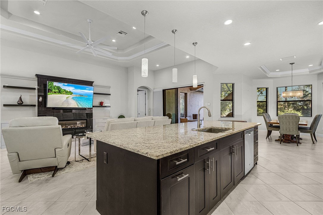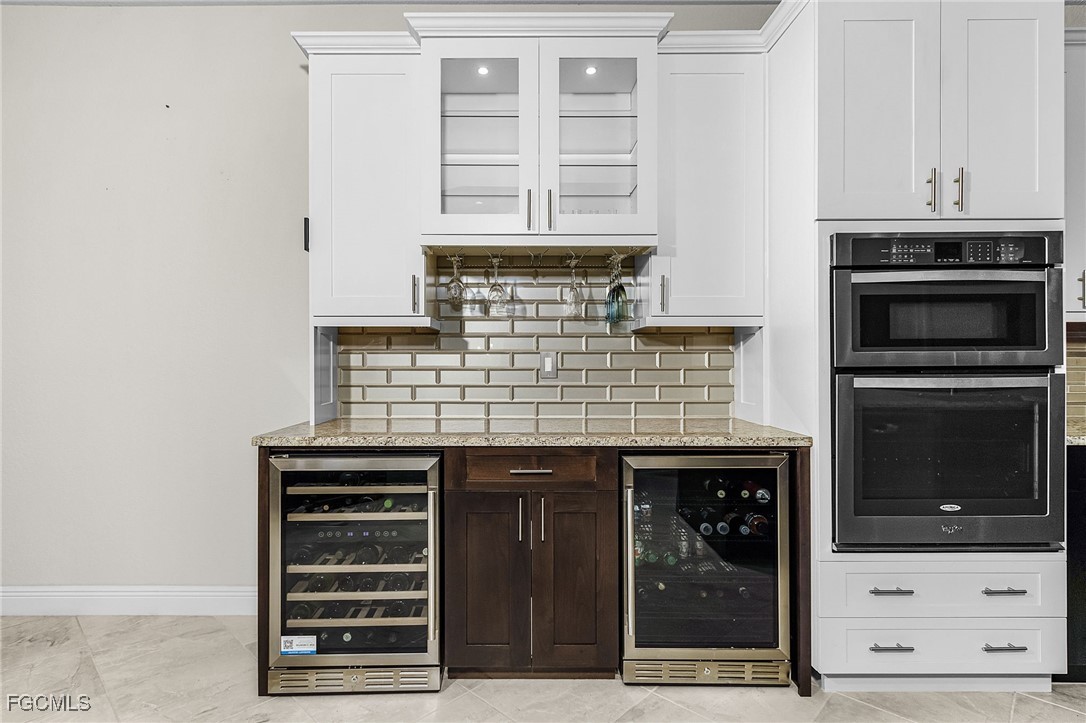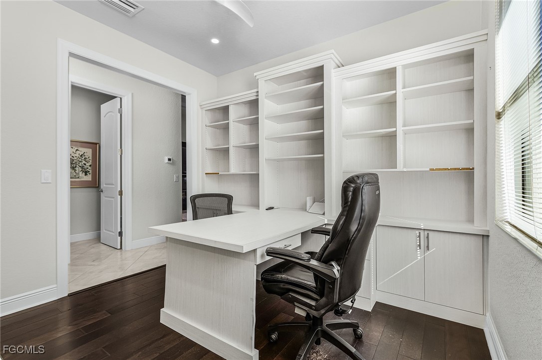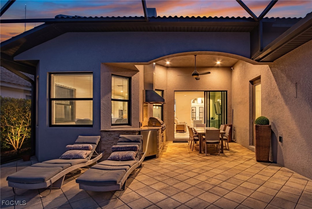 from granite tops in kitchen and baths, custom built in desk and wood flooring in the den/office, custom closets, to stunning built in shelves and cabinets with electric fireplace in the living room. Kitchen has custom pantry and dry bar with built in wine fridge and cabinet storage on both side of island. Outdoors features a large sunny pool with sun shelf and cascading water feature and attached spa, surrounded by a paved sundeck and covered lanai with outdoor kitchen. In this natural-gas community, Cordova residents enjoy gas cooking and grilling, gas heat for their pool, even tankless gas hot water heating. Lawn maintenance, irrigation, internet, cable TV and social membership to the club included in HOA. Golf and sports memberships available for an additional fee. Spanish Wells Golf and Country club offers golf courses, formal and casual dining, tennis, pickleball, bocce courts and a fitness center with classes. Prime location close to the beach, restaurants and shopping.
