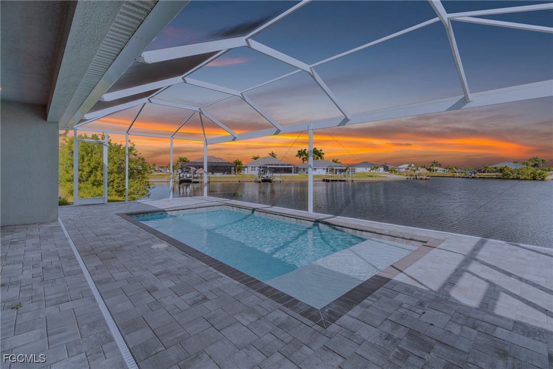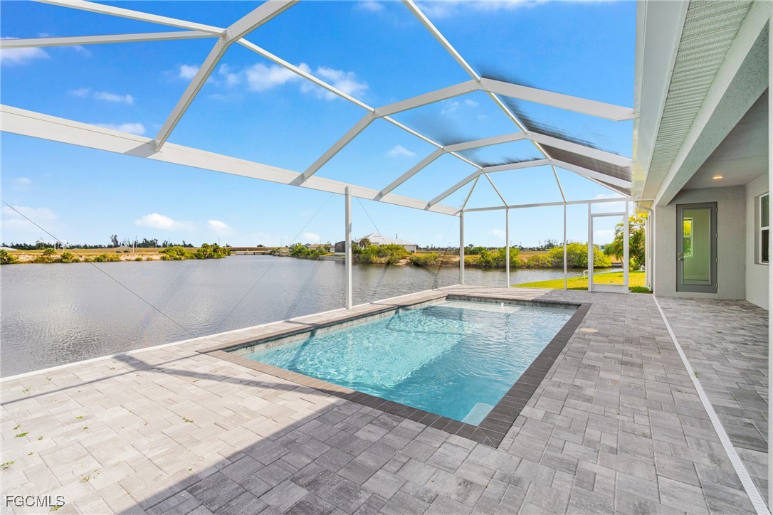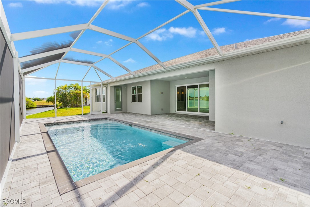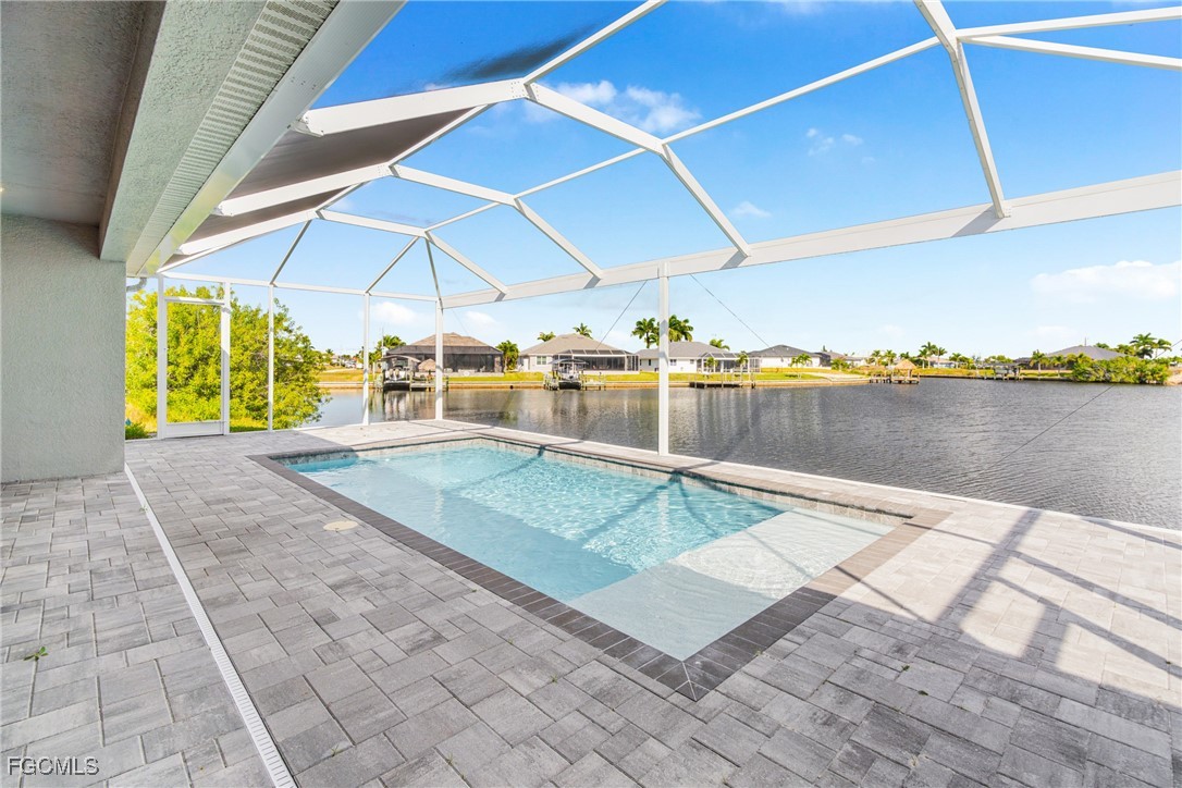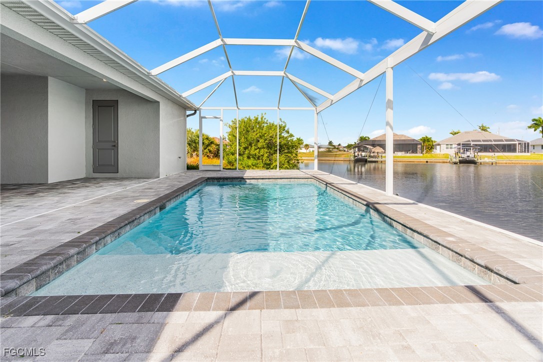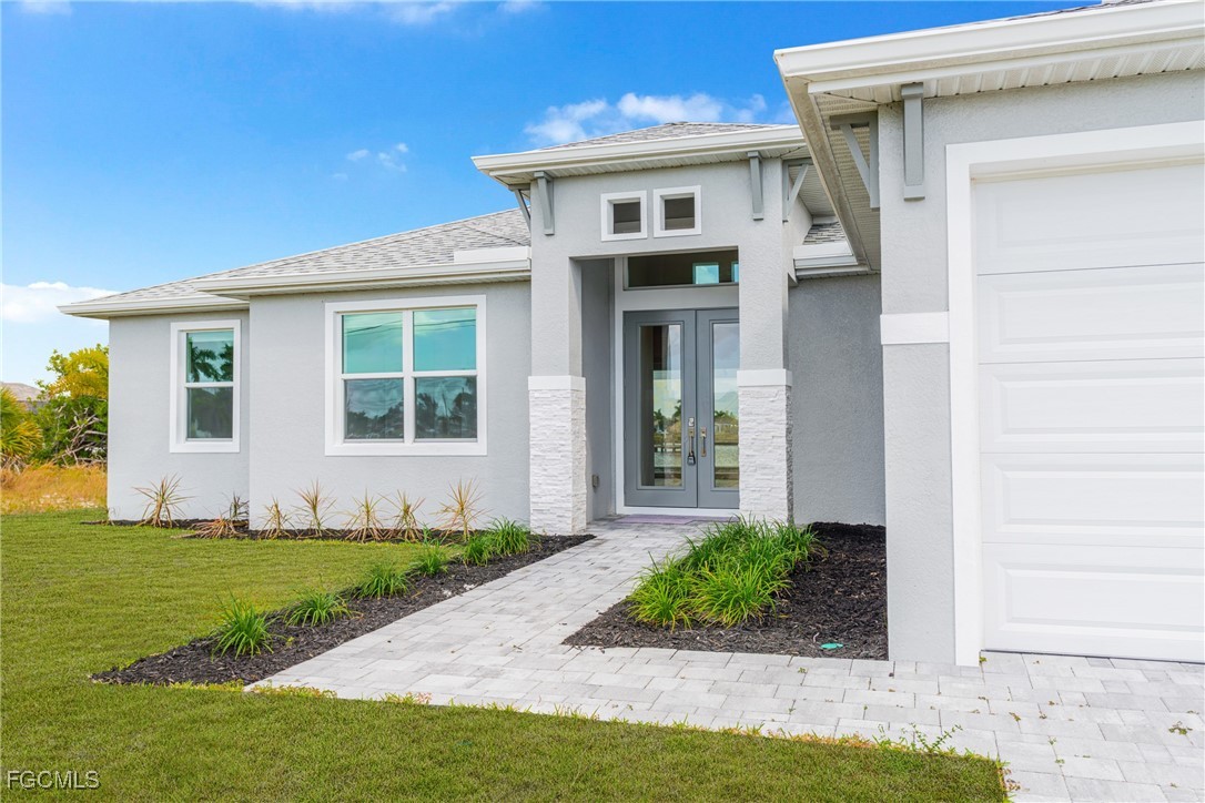Experience exceptional Florida living in this stunning new construction home located on an oversized Gulf-access lot featuring 134' of seawall. Built with FULL IMPACT GLASS, double 1-lite impact front doors, 12x24 glazed ceramic flooring, and a sleek transitional stucco elevation, this property blends style and durability. The open great room offers a Criss-Cross tray ceiling, entertainment niche, TV drop, floor outlet, and upgraded 120V & 240V circuits for flexible media setups. The chef’s kitchen features a modern single-bowl sink and overlooks the expansive outdoor living area. The primary suite includes a freestanding tub and rain-head shower, while the second bedroom offers a full ensuite bathroom. Outside, enjoy a 12x24 heated saltwater pool with sun shelf & bubbler, a 20x45 paver deck, and a premium lanai enclosure with 16/14 Poly screen and picture-window rear panel. Additional upgrades include a 3-car garage with epoxy flooring, stacked-stone entry columns, side garage door, 4x4 equipment pads, gutters, and TV drops in bedrooms and lanai. A true Gulf-access gem built for comfort, beauty, and easy Florida living.