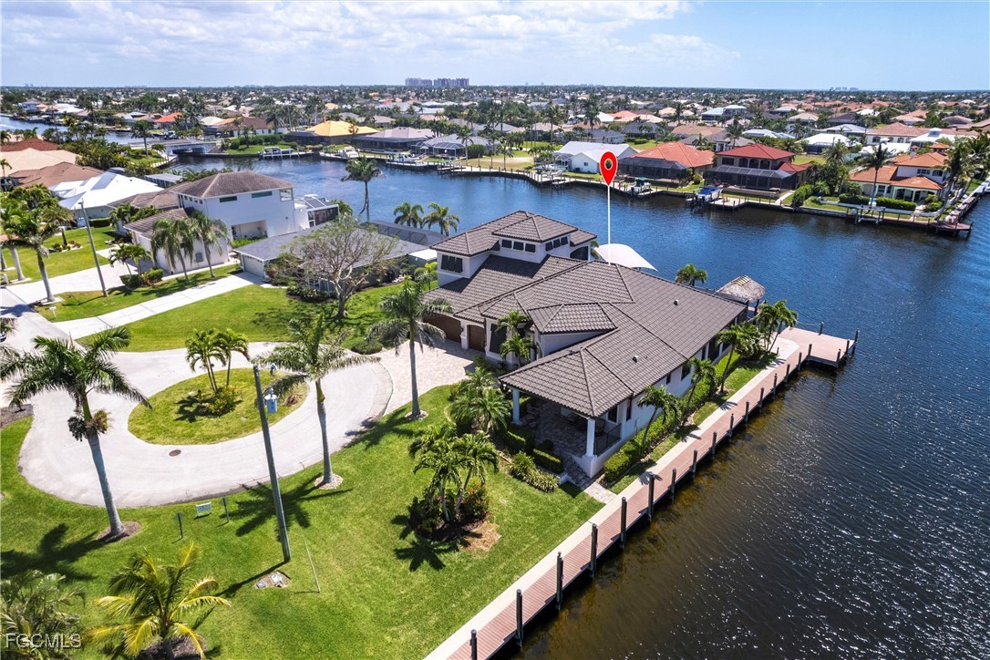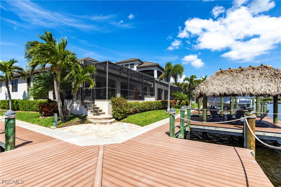 Introducing a truly unique, custom-built two-story home situated on an oversized corner lot with direct Gulf access, offering rear Southern and Western exposure. Nestled at the end of a peaceful cul-de-sac, this exceptional property boasts breathtaking preserve views at the junction of Southern Spreader and the 250-foot wide Maxwell Canal. From the moment you step inside, you'll experience a sense of tranquility in this expansive and luxurious home. With 4 spacious bedrooms and 4 beautifully appointed baths, this residence features multiple indoor and outdoor seating areas, each offering stunning water views. Every corner of this home is thoughtfully designed, from the impressive staircase to the travertine floors with intricate inlays, impact-resistant windows, and a chef-inspired kitchen. The oversized laundry room is bathed in natural light, and the large 3-car garage offers ample space for storage and convenience. This home is equipped with electric fabric hurricane shutters that also serve as sun blinds and windbreakers, providing both safety and comfort. The electric heated pool and spa, along with the expansive screened-in deck area complete with a mosquito control system, create the perfect environment for outdoor relaxation. With over 280 feet of waterfront, including a long captain's walk, a boat dock designed for sailboats, and a deck ideal for watching stunning sunsets, this property is a boater's dream. Offered turnkey, this home is ready for you to move in and start enjoying right away. Recent upgrades include a new AC system, a durable metal roof, a new heater, storm shutters, and a boat dock with a Tiki hut and captain’s walk. Schedule your private showing today to see all that this extraordinary home has to offer.