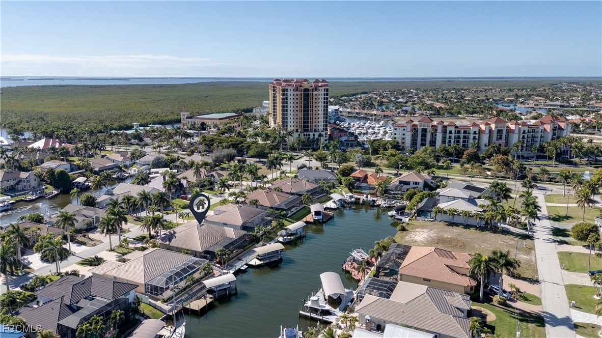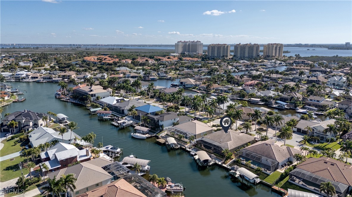 Welcome to LUXURY CUSTOM WATERFRONT LIVING, where refined design meets the ultimate Florida BOATING LIFESTYLE. Ideally positioned just minutes to open water with NO BRIDGES, this residence offers seamless indoor-outdoor living in one of Cape Coral’s most desirable waterfront locations. This tastefully appointed 4-bedroom, 3-bathroom custom home showcases thoughtfully designed high-end upgrades throughout. A grand 10-foot WROUGHT-IRON ENTRY DOOR opens to soaring double tray volume ceilings with detailed accent lighting and a well-designed split floor plan offering multiple entertaining spaces. Enjoy tranquil water views from the primary suite, great room, and media room, all with direct lanai access. The chef’s kitchen is beautifully appointed with custom cabinetry featuring accent lighting above and below, a walk-in pantry with a second refrigerator, and luxury stainless steel GE Monogram appliances. Interior highlights continue with IMPACT WINDOWS AND DOORS, plantation shutters, custom crown molding, built-in cabinetry throughout, listello tile accents, central vacuum, a whole-home SONOS SOUND SYSTEM, and recent upgrades including a new A/C with ultraviolet system and Honeywell smart thermostat. A standout feature of the home is the EXPANSIVE MEDIA ROOM WITH WET BAR, wine refrigerator, and adjacent pool bath, currently utilized as an exceptional entertaining space. This versatile area also offers the flexibility to be converted into an additional bedroom or private ensuite, providing added value and adaptability to suit a variety of lifestyle needs. The oversized outdoor living area is truly resort-inspired, featuring a heated SALTWATER POOL AND SPA with custom LED lighting and a dramatic rock waterfall. Boating enthusiasts will appreciate the 18,000-POUND BOAT LIFT with new canopy and impressive 80-FOOT CAPTAIN’S WALK, offering exceptional dockage and waterfront access. Additional exterior features include a composite dock, TIKI HUT, canoe lift/launch, fish cleaning station, power and water at the dock, pool bath, storage room, lush tropical landscaping, upgraded landscape lighting, custom exterior lighting on a timer system, new soffits (2022), tile roof, FULLY FENCED BACKYARD, and an oversized garage with built-in cabinetry. Notably, this home experienced no water intrusion during previous hurricanes. Located within WALKING DISTANCE TO CAPE HARBOUR MARINA, offering waterfront dining, boutique shopping, live entertainment, and boat fueling, this exceptional home delivers luxury, lifestyle, and location—an extraordinary opportunity for the most discerning waterfront buyer.