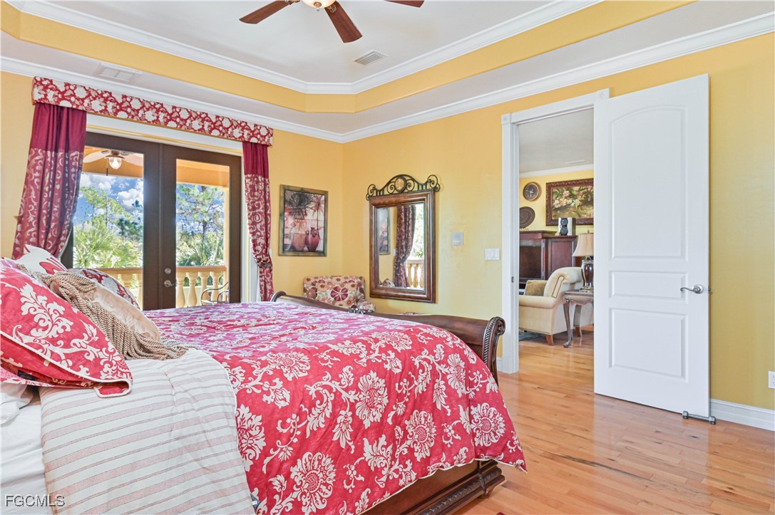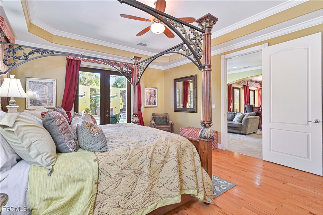The chef’s kitchen is designed for entertaining with two islands, custom wood cabinetry, double oven, warming oven, wine cooler, ice machine, and abundant storage. Multiple balconies surround and overlook a resort-style pool area featuring a large custom pool, spa, and dedicated pool bath.