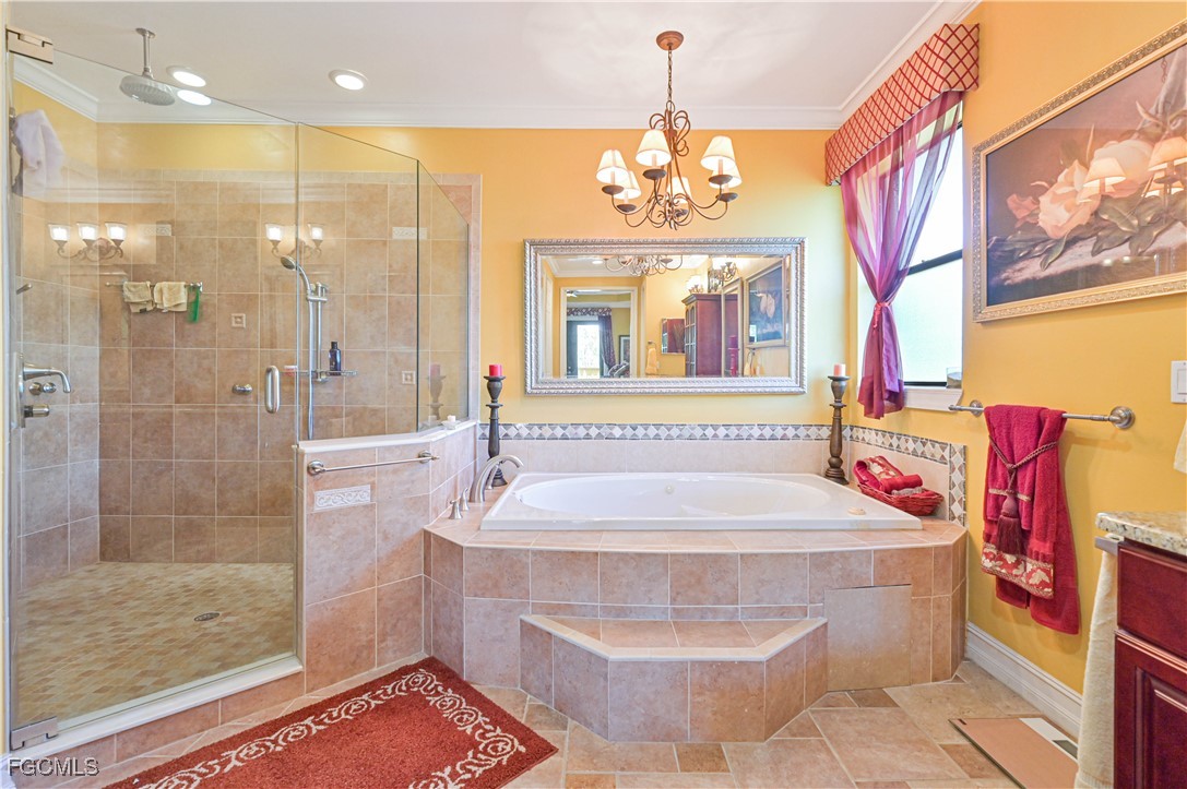 Two spacious primary suites offer custom walk-in closets, garden tubs for two, large vanities, and private retreats. One additional bedroom features an ensuite bath. Additional highlights include oversized secondary bedrooms, a media room, low-heat-impact windows, instantaneous water heater, propane tank, and solid concrete construction on both levels. Flood insurance not required.