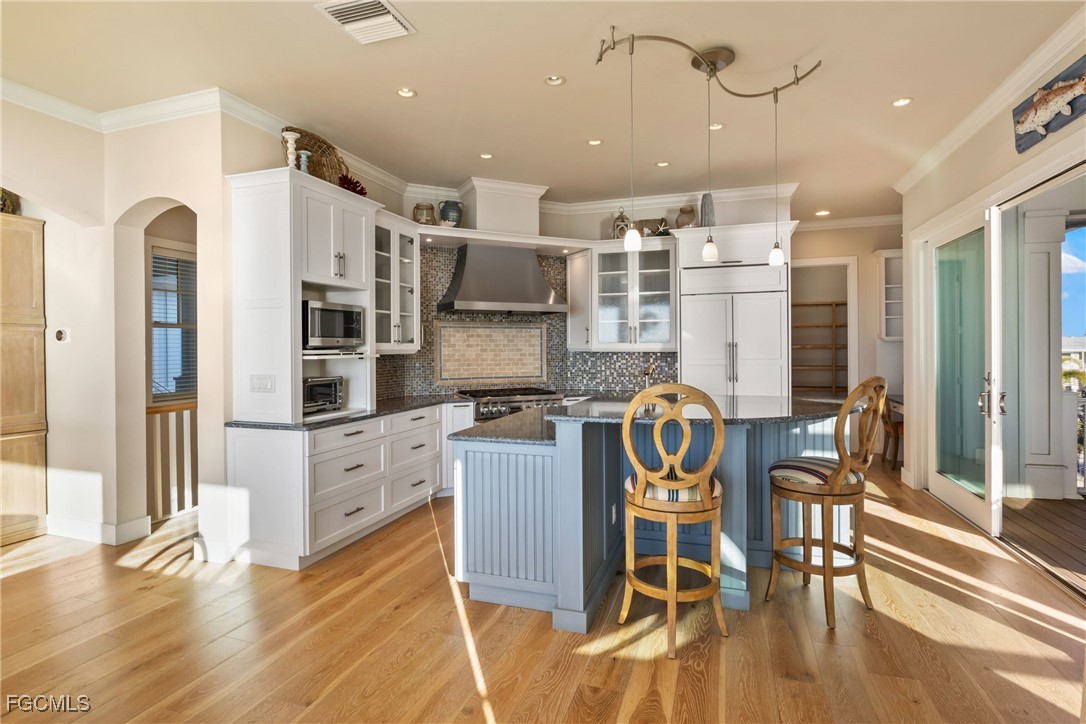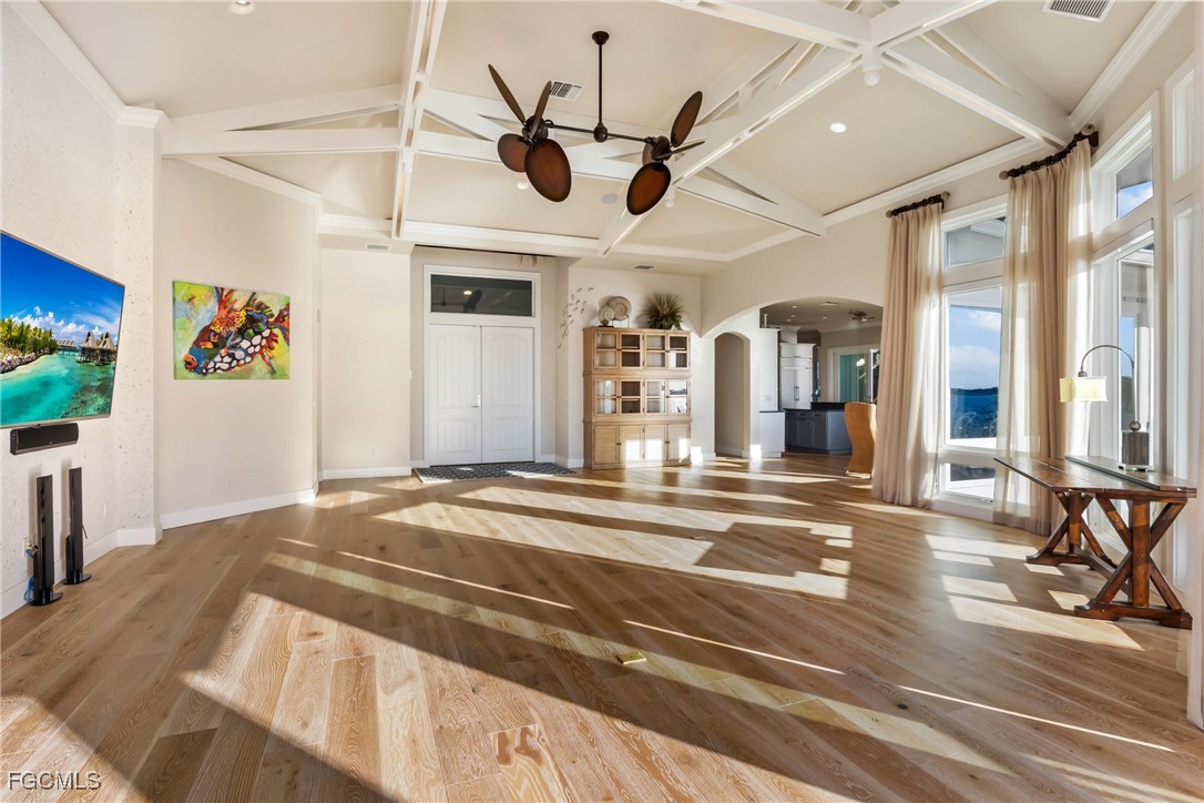 A DREAM estate home set on the wide-open waters of Matlacha Pass with sweeping, unobstructed views and million dollar sunsets! This exceptional custom-built coastal estate is a rare offering where architecture, craftsmanship, and setting come together in perfect harmony. Built for peace of mind, the home features all hurricane-impact Andersen windows and sits at a 16 foot elevation for the main living level. West-facing to capture breathtaking sunsets over the historic fishing village of Matlacha, the home was thoughtfully designed to showcase water views from nearly every room. Offering 3 bedrooms plus a large den, 5 bathrooms, a private elevator and expansive living spaces, the residence features dramatic wall-to-wall windows on the upper level that flood the interior with natural light while framing endless water vistas. The sprawling great room is highlighted by soaring ceilings, beautiful wood flooring, custom detailed craftsmanship, and an open, airy layout -ideal for both everyday living and entertaining on a grand scale. At the heart of the home is a chef’s kitchen designed to impress, complete with a gas WOLF range, Sub Zero fridge, custom cabinetry, oversized island, premium finishes, and a large walk-in pantry. The kitchen flows seamlessly into multiple dining and gathering spaces, including an exceptional screened al fresco dining room that allows for year-round indoor-outdoor living while enjoying coastal breezes and tranquil water views. The private primary suite serves as a true retreat, offering stunning views, generous proportions, and a spa-like bathroom designed for relaxation with luxurious finishes and serene ambiance. Additional guest suites are equally well-appointed, providing comfort and privacy for family and visitors alike, all with en-suite bathrooms and spacious closets. Outdoor living is a centerpiece of this estate, featuring extensive patios and entertaining areas, a sparkling pool and spa, and beautifully designed spaces ideal for both quiet moments and lively gatherings. There are multiple outdoor living areas both open and shaded, as well as an outdoor shower, Boating enthusiasts will appreciate the private dock equipped with two lifts, offering effortless access to Matlacha Pass and the open waters beyond. Completing the property is an impressive four-car garage configuration, with a separate three-car garage and one-car garage, along with a 50-amp charging station. The home has also been wired for a generator hookup. Every element of this residence was carefully considered, from luxury upgrades to functional design, all centered around capturing and celebrating the extraordinary waterfront setting. This is more than a home — it is a lifestyle defined by sunsets, open water, refined coastal luxury, and unforgettable views in one of Southwest Florida’s most iconic waterfront locations - all set on a scenic street with easy access to Cape Coral and Pine Island.