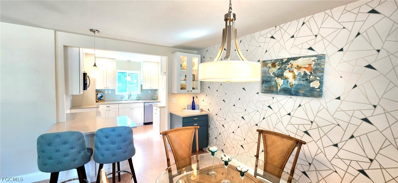The primary suite is privately positioned away from the rest of the home with its own bathroom, offering a peaceful retreat. On the opposite side, you’ll find three additional bedrooms, including one with a convenient half bath, plus an additional full bathroom that has been completely redone in fun, retro-inspired colors that perfectly match the home’s personality.The kitchen offers a true sous-chef layout, ready for your personal appliance choices and culinary style, surrounded by rich ocean-blue tones that inspire creativity and gathering.