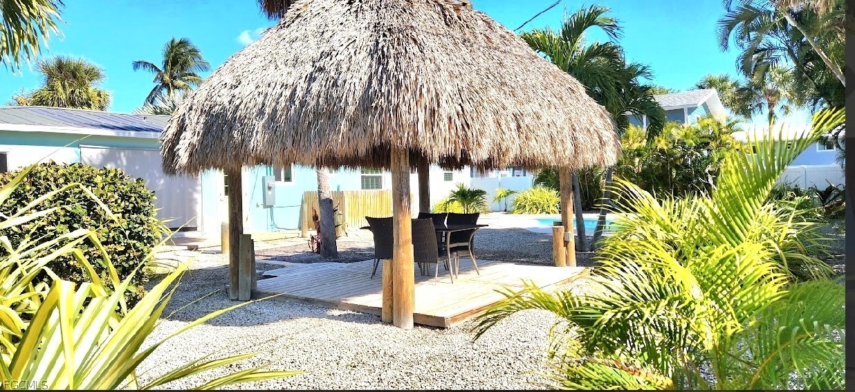 Welcome to 4870 Coquina Road on Fort Myers Beach a coastal property full of personality, color, and island charm just moments from the sand. From the moment you arrive, the seafoam entry and vibrant beach-block exterior set the tone for a home that is anything but ordinary. Inside, you’ll discover a layout filled with natural light, bold character, and unforgettable design touches throughout. Step outside to your private tropical retreat featuring a kidney-shaped pool, classic tiki hut, and the perfect setting for sunset dinners and relaxed island evenings. This backyard was made for entertaining, unwinding, and soaking in the Fort Myers Beach lifestyle.