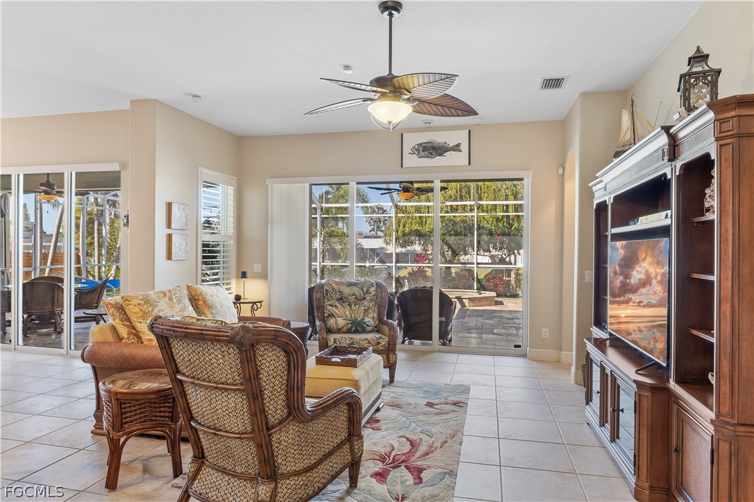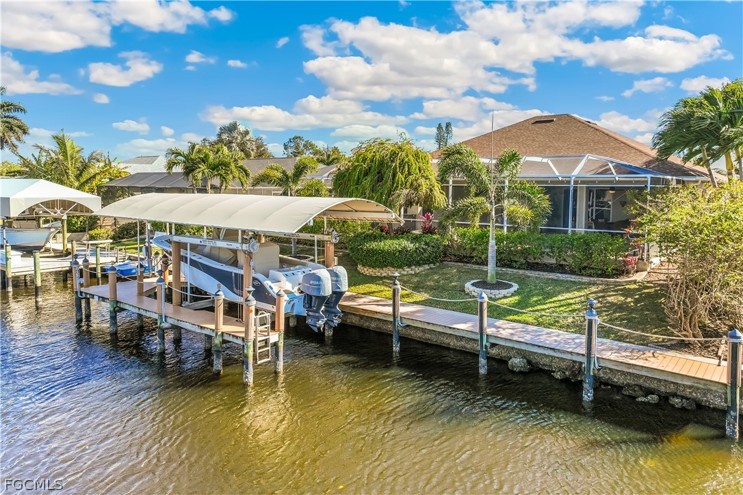 Enjoy Exceptional WATERFRONT Living In This METICULOUSLY MAINTAINED 2500 SF Home Offering A Short, DIRECT Boat Ride To The River Along With A 14,000 lb BOAT LIFT With New Canopy, A Captain's Walk, And A Personal Watercraft Lift Ideal For Two Kayaks, One Pedal Boat, Or Wave Runner. A Heated SALTWATER POOL AND SPA Complete This Incredible Setting, Making It Perfect For Boating, Entertaining, And Relaxing In Style. The Outdoor Living Space Is Further Enhanced By An Impressive OUTDOOR KITCHEN Complete With Grill, French Drain Sink, Side Burner, And Refrigerator, All Overlooking The Beautiful Pool Area Featuring Gorgeous TRAVERTINE Stone On The Lanai. ELECTRIC STORM SMART SHUTTERS Protect The Lanai, While Lexan Shutters On The Front Windows And Drop-Down Shutters On The Remaining Windows Provide Added Peace Of Mind. Inside, You’ll Find A Large Kitchen With Abundant Solid Surface Countertop Space And Wood Cabinetry That Is Ideal For Both Everyday Living And Entertaining. PLANTATION SHUTTERS Add Timeless Style Throughout The Home. The Spacious Master Suite Offers Dual Sinks, A Walk-Through Shower, A Deep Soaking Tub, And A Huge Walk-In Closet, Creating A True Private Retreat. Additional Highlights Include A New Water Heater, An OVERSIZED Garage With EPOXY Flooring, Sink, And Dedicated Work Area With A Workbench, As Well As A Paver CIRCULAR DRIVEWAY And Paver Walkway Leading To The Dock Area For Added Curb Appeal And Convenience. Check Out The FLY THROUGH Virtual Tour And Schedule Your Personal Tour Today!