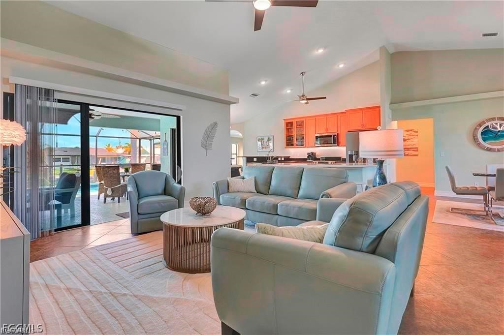 Boater’s Paradise Meets Resort Living — Best Priced in the Neighborhood! Step into your dream lifestyle with this TURNKEY Gulf Access Pool Home in the heart of SW Cape Coral—just a 10-minute boat ride to the Caloosahatchee River and beyond to open waters. Whether you're docking a 30+ ft vessel on your newly updated (2022) composite dock with 12K lb lift, or paddling to the Bimini Basin, this home is your gateway to waterfront adventure. Inside, luxury meets comfort: 3 spacious bedrooms + den/office + bonus room, Chef’s kitchen with granite counters and sleek tile floors throughout, Spa-inspired master bath with dual sinks, walk-through double shower, and soaking tub! Air-conditioned 3+ car garage with extended depth for all your toys, Mature royal palms and a horseshoe driveway offer curb appeal and ample parking. Outside, it’s pure paradise: Oversized resort-style pool perfect for sunset cocktails, No flooding history—peace of mind included! Minutes from Sanibel, Fort Myers Beach, downtown Cape Coral, and the new Margaritaville & Sunseeker Resorts This is more than a home—it’s a lifestyle upgrade. Priced to move, packed with upgrades, and positioned in one of Cape Coral’s most desirable boating neighborhoods. Don’t miss your chance to own this waterfront gem. Call today for your private showing—and start living the dream.