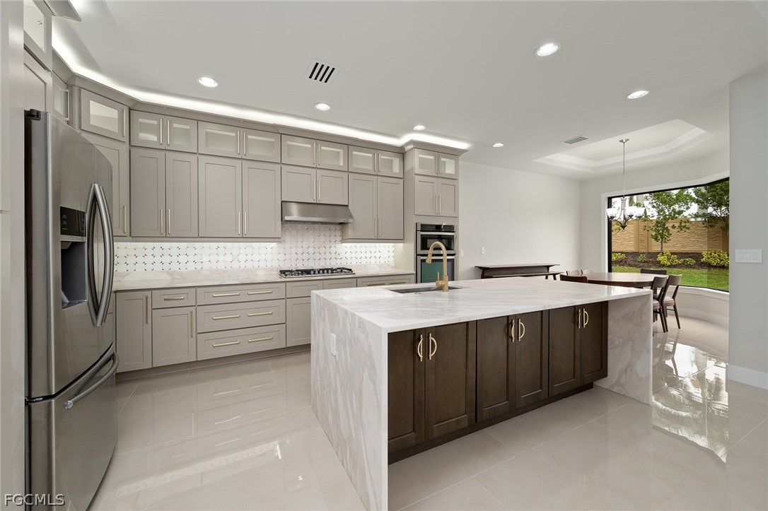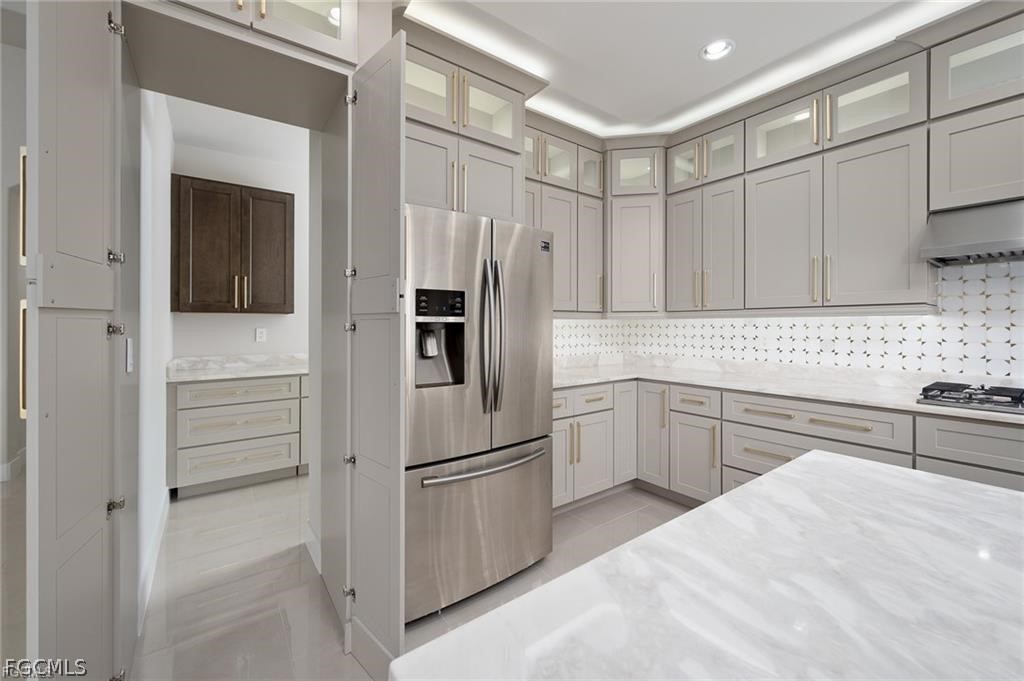 RITZ INSPIRED EXQUISITE FULL REMODEL IN SOUGHT AFTER BONITA LAKES. Luxury at its finest throughout this four bedroom, three bath custom high-end remodel. From the moment you walk in the grand arched entry with great room and crystal chandelier you will feel as if you are in a five-star resort. The entire home has been painted inside and out with sophisticated tile flooring, new sculptured carpet in bedrooms, new doors, baseboards and the finest of finishes. The great room will not disappoint for entertaining with wet bar and wine cooler leading to the designer kitchen. A butler's pantry has been added with high-end cabinetry and desk for office space off the kitchen. The designer kitchen cabinetry with interior lights compliments the eat-in kitchen with special order Imported Italian granite countertops and center island which allows for additional seating. The owner's suite has a private sitting area, plenty of room for a king-sized bedroom set and on-suite features separate bath and shower with dual sinks and walk-in closets with custom wood shelving. All new quality appliances and enough room on the oversized lot for a pool with enclosure. This home is true luxury.