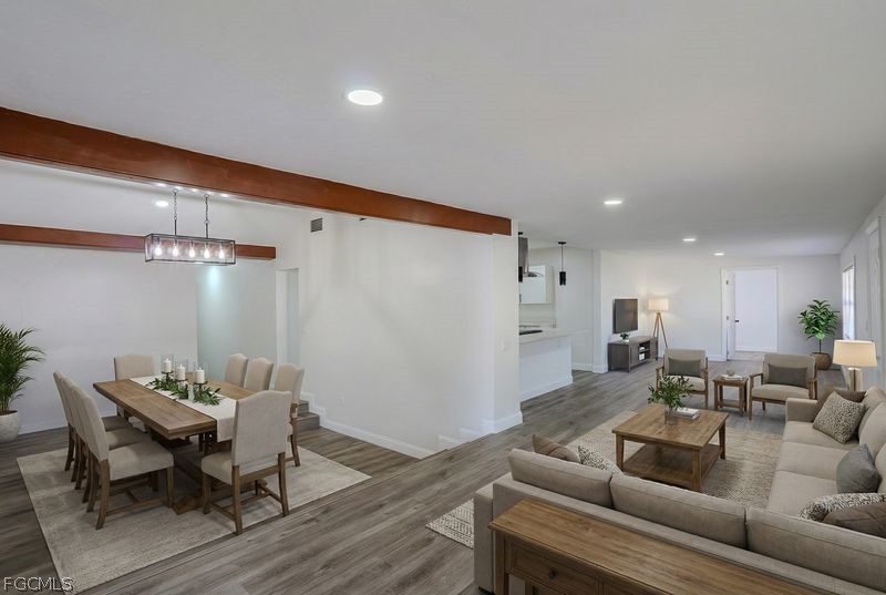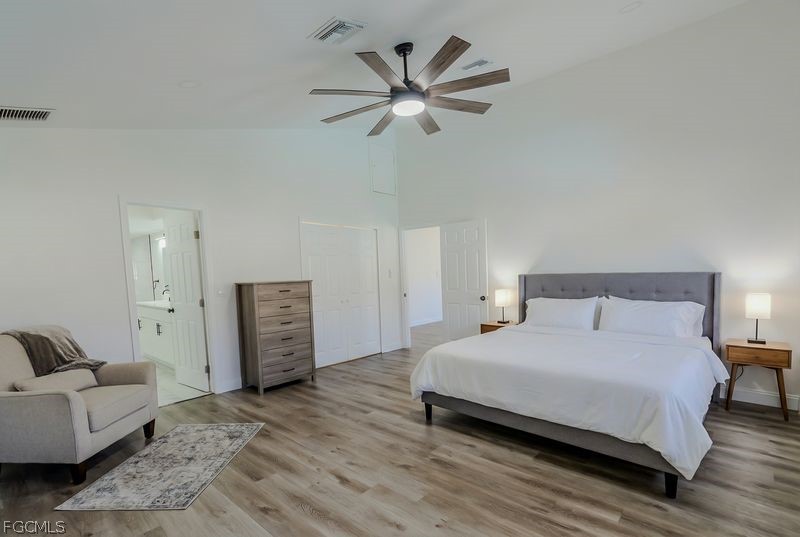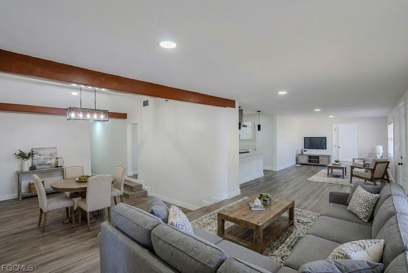 One or more photo(s) has been virtually staged. Updated 5-bedroom, 3-bath POOL HOME on a rare oversized corner lot in central Fort Myers. Situated on nearly HALF AND ACRE and spanning three platted lots, this single-story property offers exceptional space, flexibility, and accessibility—ideal for large or multi-generational families. The interior features updated finishes throughout, including durable vinyl flooring (no carpet), vaulted ceilings, and a functional layout with approximately 2,848 sq ft of living area. The kitchen and bathrooms have been updated, creating a move-in-ready home designed for everyday living and entertaining. Step outside to a private, pool with a spacious patio—perfect for Florida outdoor living. The expansive lot provides dual side access, generous parking, and ample room for trucks, trailers, work vehicles, or recreational toys. No HOA and no parking restrictions. A 20 x 30 storage/utility structure offers excellent potential for conversion into a guest house or in-law suite (buyer to verify), adding long-term value and flexibility. Additional features include screen lanai, porch, fencing, and mature lot spacing rarely found in this location. Centrally located near major roads, shopping, dining, medical facilities, and a nearby elementary school, this property combines space, convenience, and versatility—a hard-to-find combination in Fort Myers.