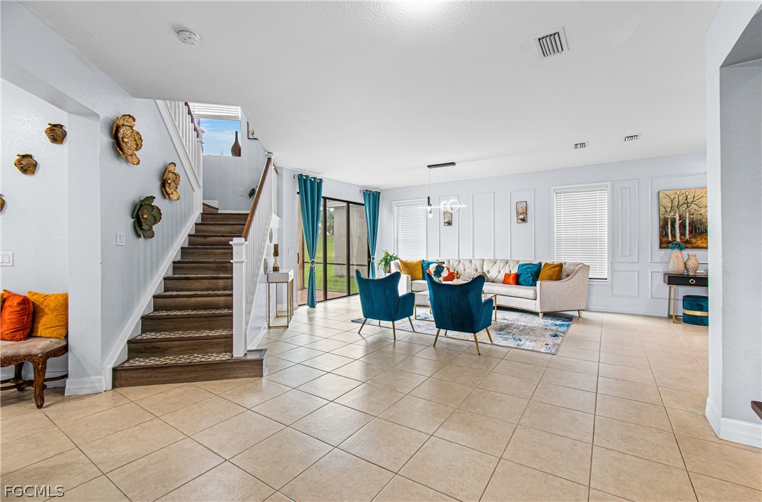 Welcome home to this stunning Montego model where space, style, and comfort come together beautifully. Offering over 4,000 square feet of living space, this impressive home features 6 bedrooms, 5 full bathrooms, and an attached 3-car garage. As you enter, you're welcomed by a beautiful formal living room featuring sliding doors that open to the screened-in lanai, creating the perfect blend of indoor and outdoor living while overlooking the spacious backyard. Just around the corner is the well-appointed kitchen, thoughtfully designed with granite countertops, tile backsplash, stainless steel appliances, and abundant cabinetry. Entertaining is effortless with multiple dining options including a formal dining room, eat-in kitchen, and breakfast bar. The family room, open to the kitchen, is filled with natural light and provides a comfortable space for everyday living and gatherings. The main floor also includes a guest bedroom, full guest bathroom, and convenient mudroom. Upstairs you'll find a large bonus loft, perfect for relaxing, gaming, or movie nights. The primary retreat is truly exceptional, featuring a large soaking tub, separate shower, and private his-and-hers bathrooms with individual vanities. The second floor is completed by additional guest bedrooms, bathrooms, and a laundry room with custom cabinetry and utility sink. Throughout the home you'll find decorative wood accents, along with tile and luxury vinyl flooring—no carpeting—creating a clean, modern look with easy maintenance. Situated on a quiet cul-de-sac, the home features a spacious backyard with plenty of room for a pool, offering the perfect setting to play, relax, and enjoy the Florida sunshine. Located in the highly sought-after Marina Bay, this all-ages, amenity-rich community offers something for everyone, including a clubhouse, social room, catering kitchen, game and card rooms, indoor sport court, fitness center, resort-style pool, lap pool, splash zone, playground, basketball, tennis, pickleball, and a party pavilion. All of this is just minutes from Southwest Florida’s beautiful beaches, dining, shopping, entertainment, spring training stadiums, hospitals, and I-75. This is more than a home, it’s the Florida lifestyle you’ve been dreaming of.